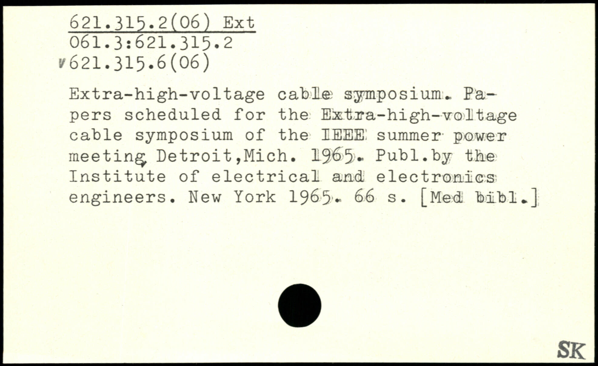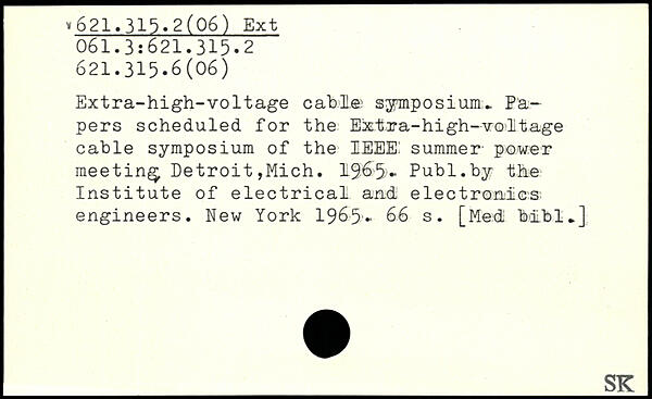 Extra-high-voltage cable? symposium., Papers scheduled for the Extra-high-voltage cable symposium of the IEEE! summer- power meeting Detroit,Mich. 1965►
