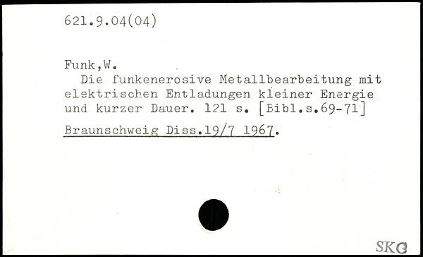 Die funkenerosive Metallbearbeitung mit elektrischen Entladungen kleiner Energie und kurzer Dauer.
