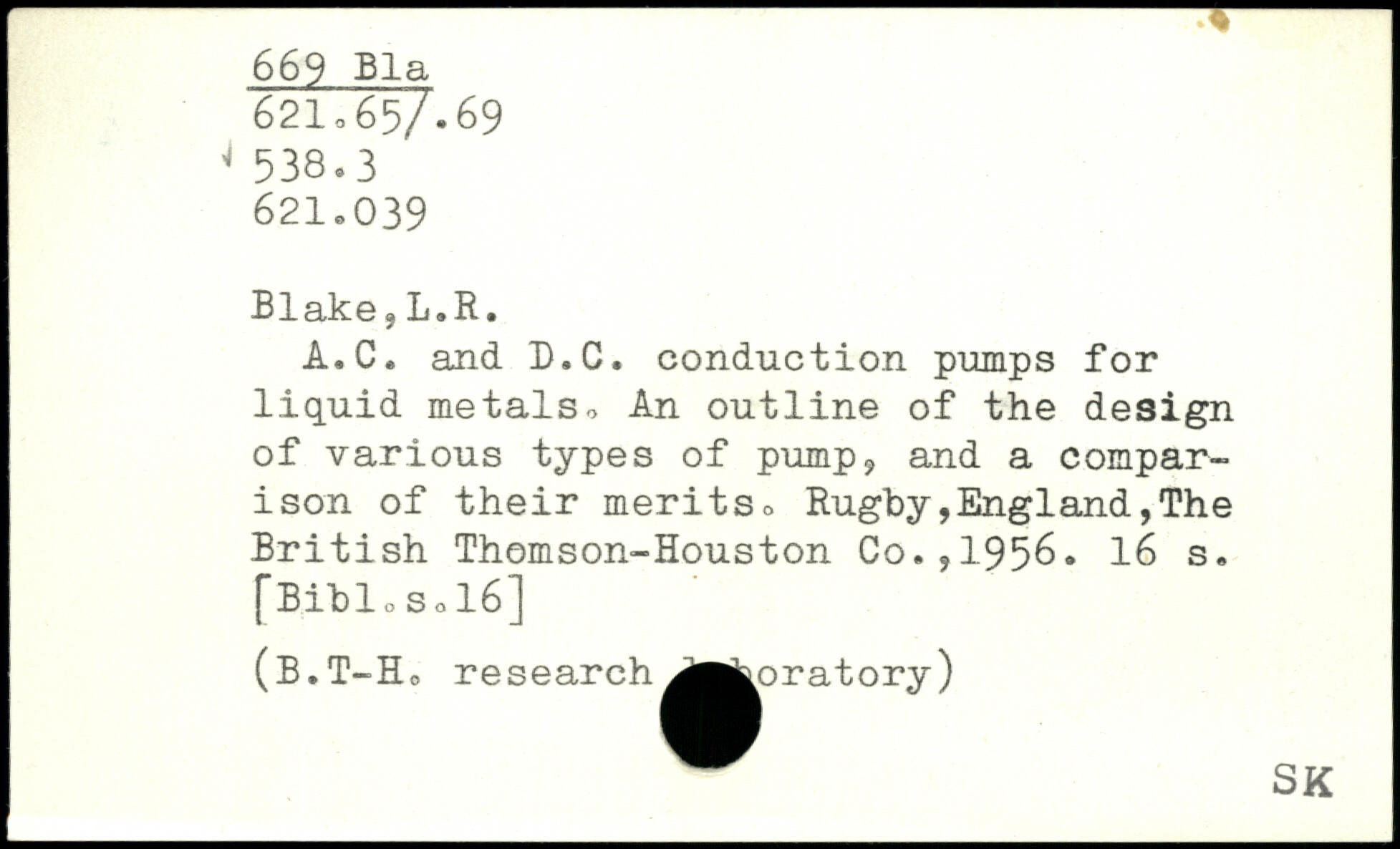 A.C. and D.C. conduction pumps for liquid metalso An outline of the design of various types of pump, and a comparison of their merits.