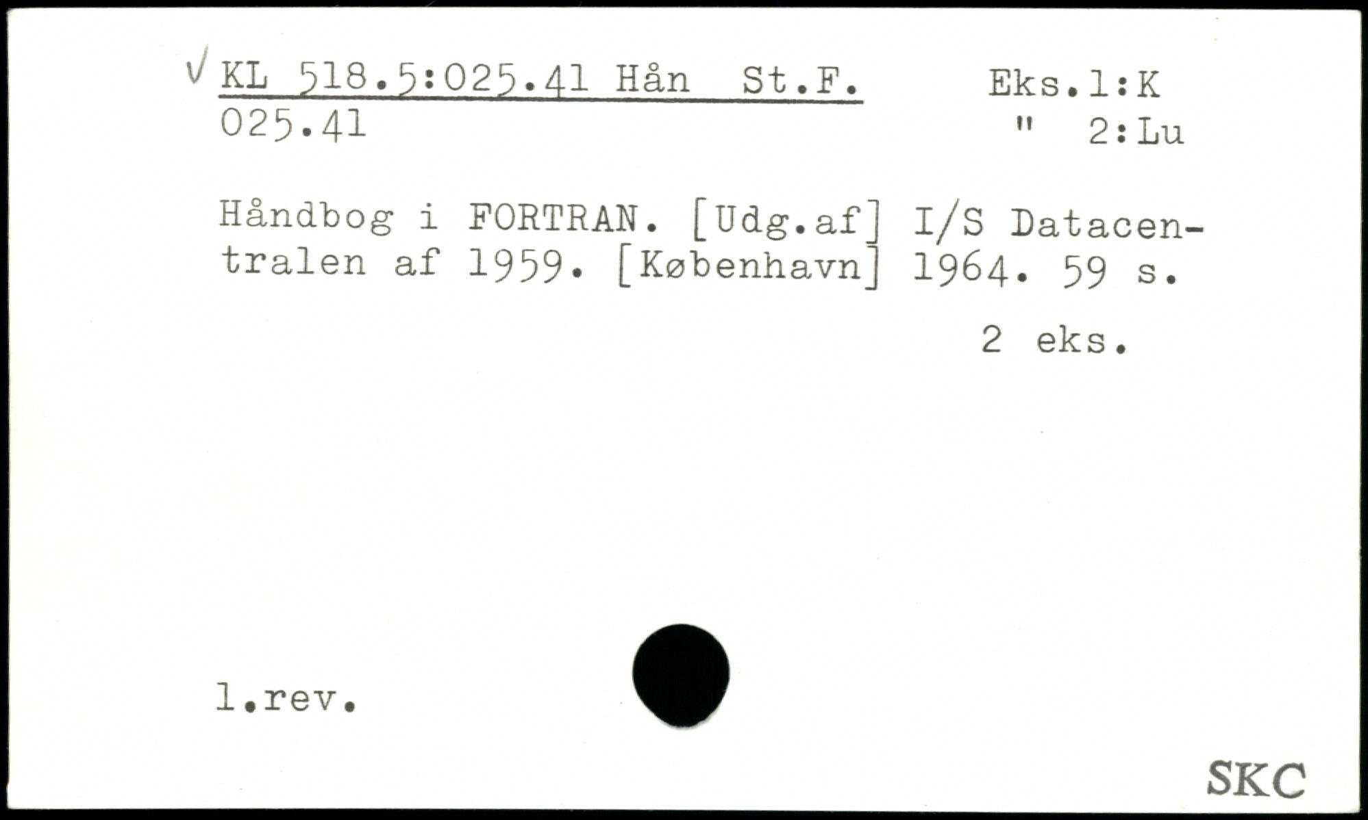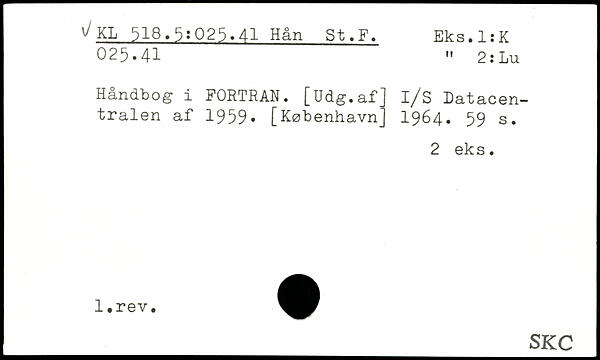 Håndbog i FORTRAN. [Udg.af] i/S Datacentralen af 1959.