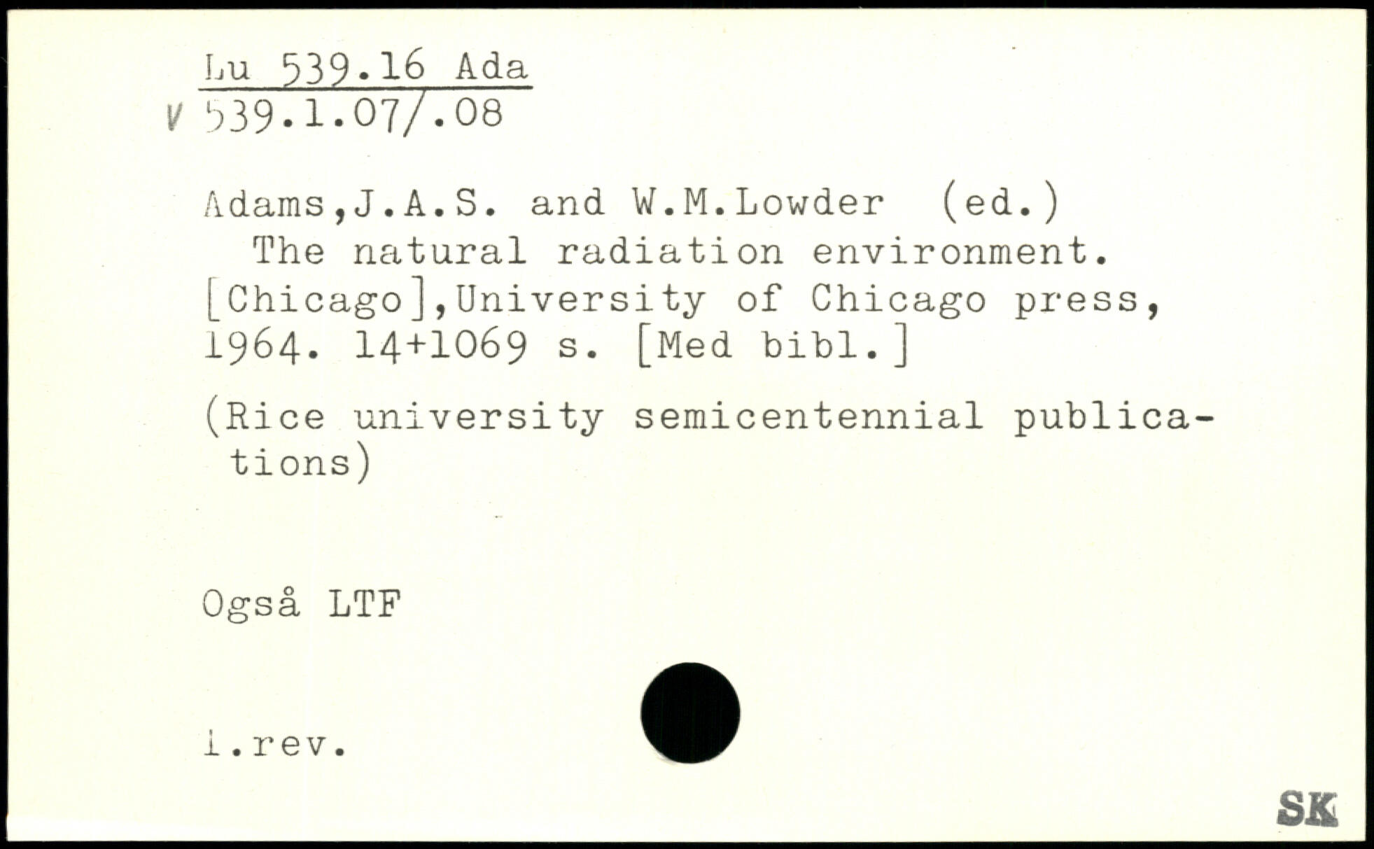 The natural radiation environment. [Chicago],University of Chicago press, 1964. I