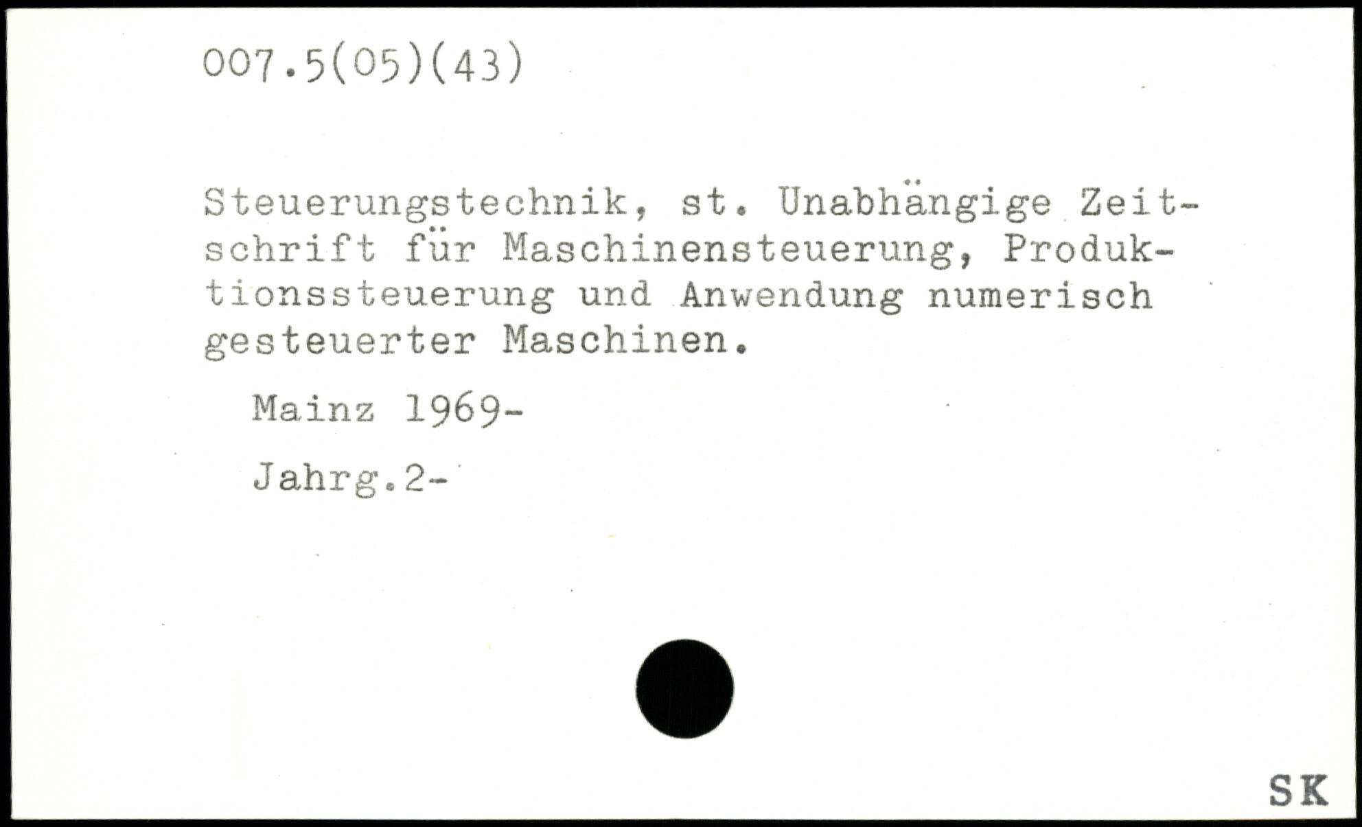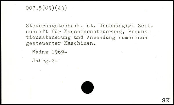 Steuerungstechnik, st. Unabhängige Zeitschrift für Maschinensteuerung, Produk-tionssteuerung und Anwendung numerisch gesteuerter Maschinen. Mainz 1969- Jahrg.2-