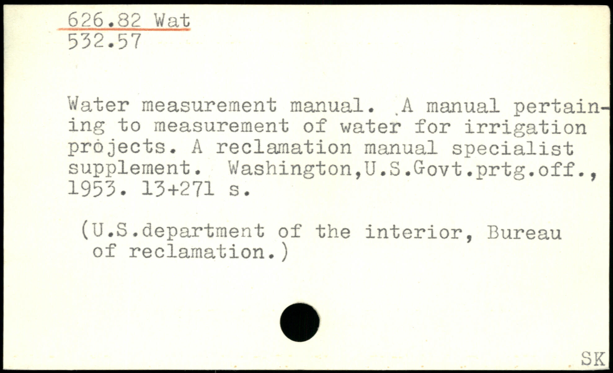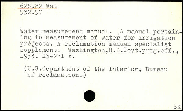 Water measurement manual. .A manual pertaining to measurement of water for irrigation projects. A reclamation manual specialist supplement. Washington,U.S.Govt.prtg.off., 1953.