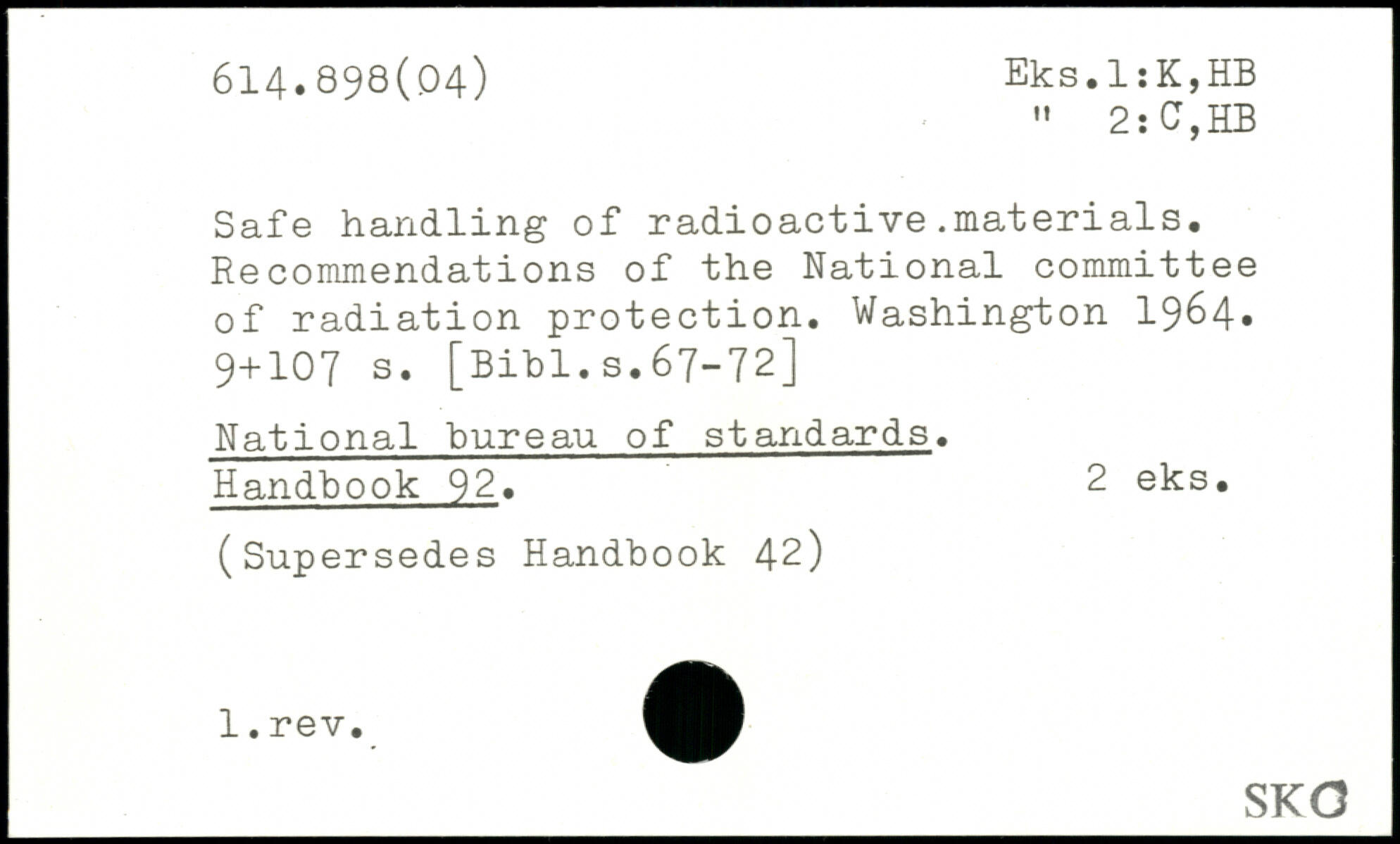 Safe handling of radioactive.materials. Recommendations of the National committee of radiation protection.