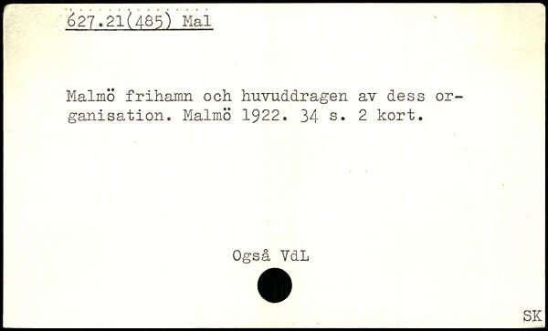 Malmö frihamn och huvuddragen av dess organisation. Malmö 1922.