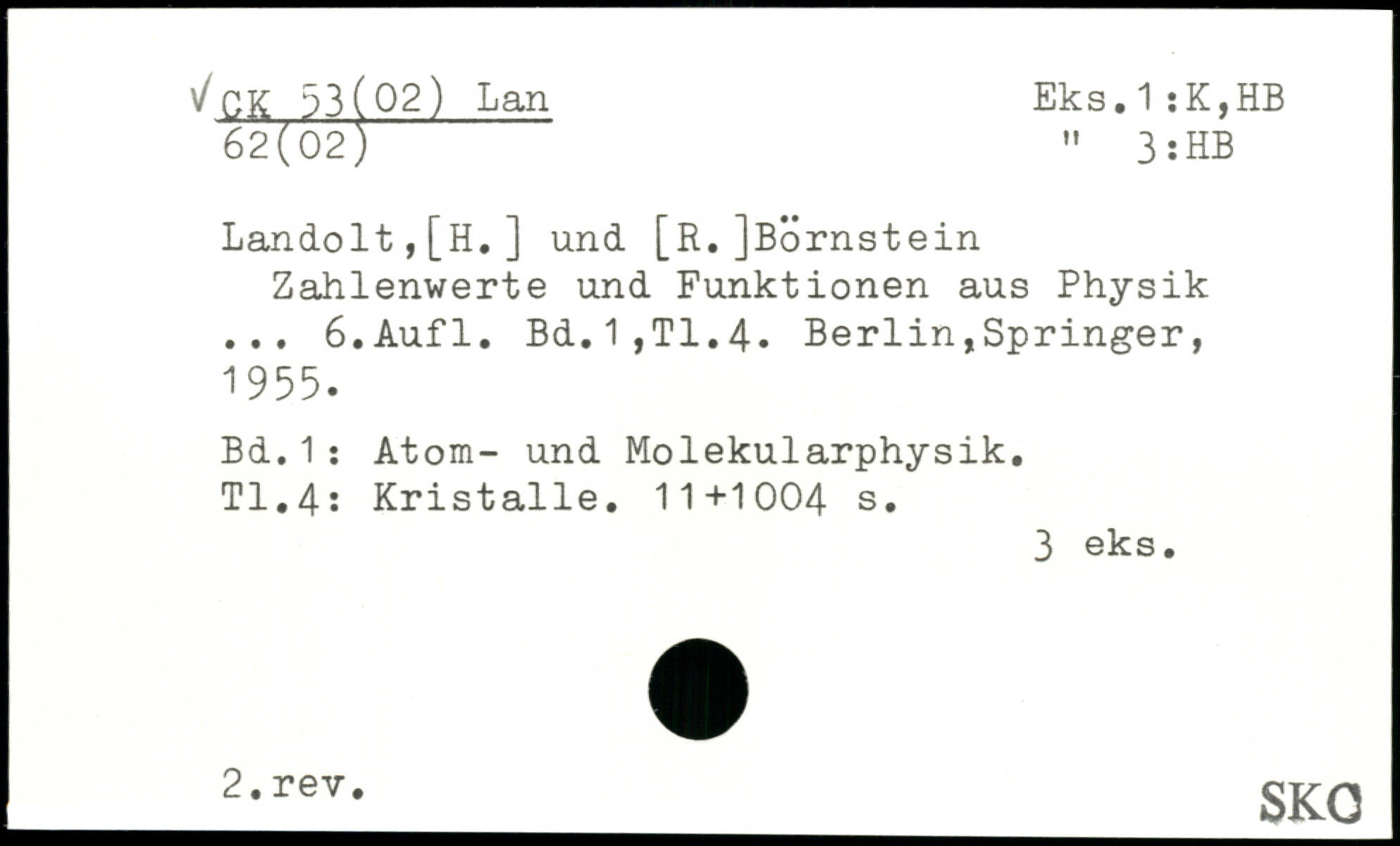 Landolt,[H.] und [R.]BÖrnstein Zahlenwerte und Funktionen aus Physik ...