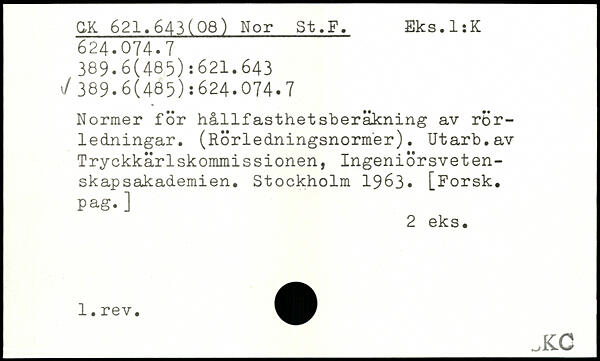 Normer för hållfasthet sberäkning av rörledningar. (Rörledningsnormer). Utarb.av Tryckkärlskommissionen, Ingeniörsvetenskaps akademi en.