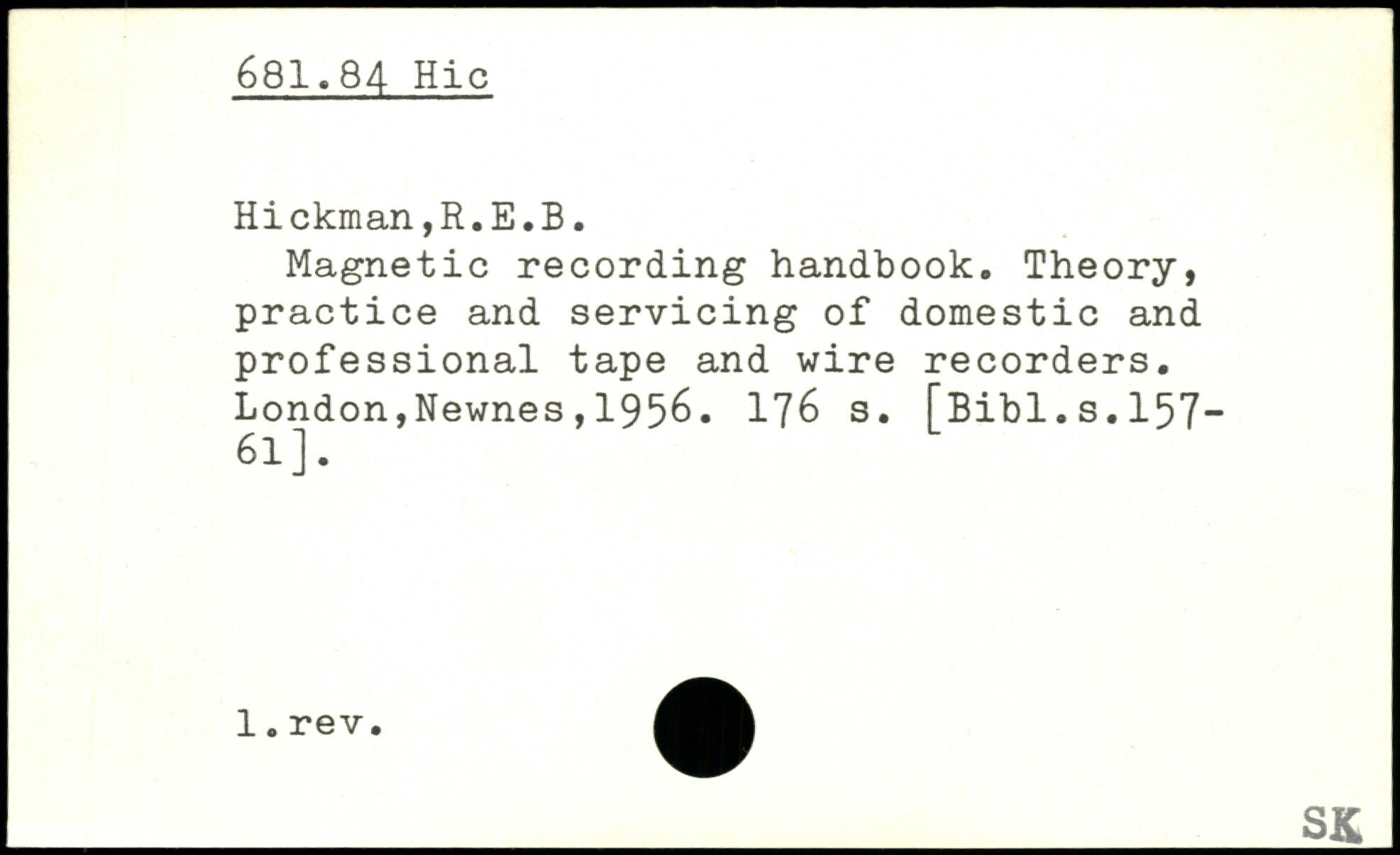 Magnetic recording handbook. Theory, practice and servicing of domestic and professional tape and wire recorders.