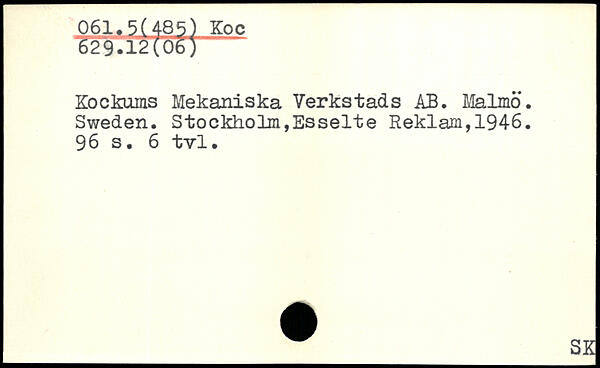 Kockums Mekaniska Verkstads AB. Malmö.. Sweden.