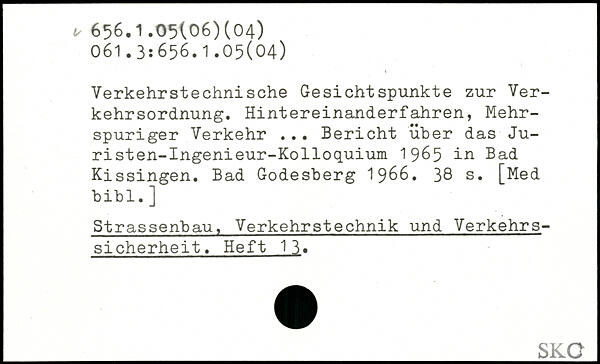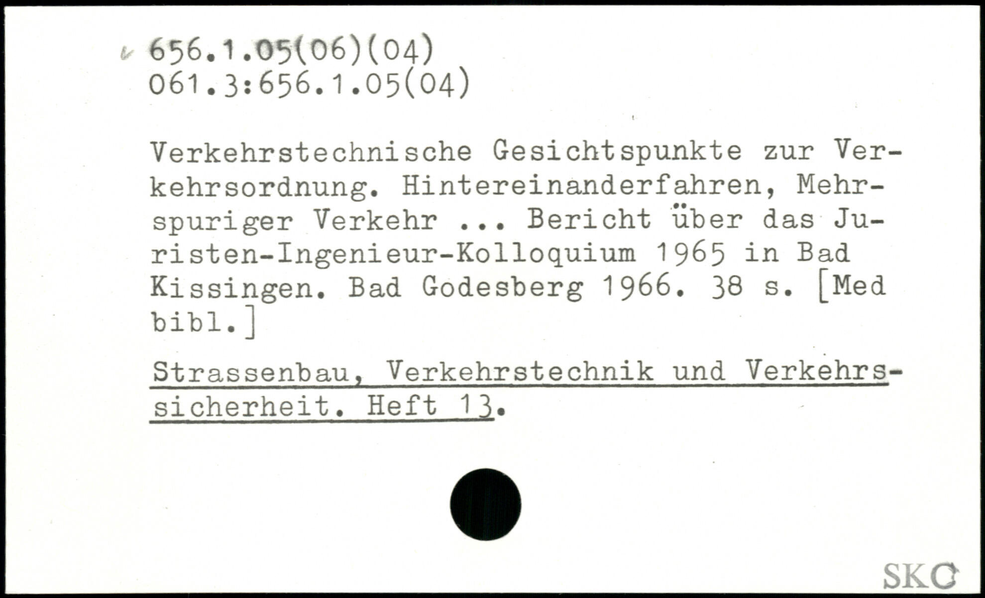 Yerkehrstechnische Gesichtspunkte zur Verkehrsordnung. Hintereinanderfahren, Mehrspuriger Verkehr ... Bericht über das Juri sten-Ingenieur-Kolloquium 1965 in Bad Kissingen. Bad Godesberg 1966.