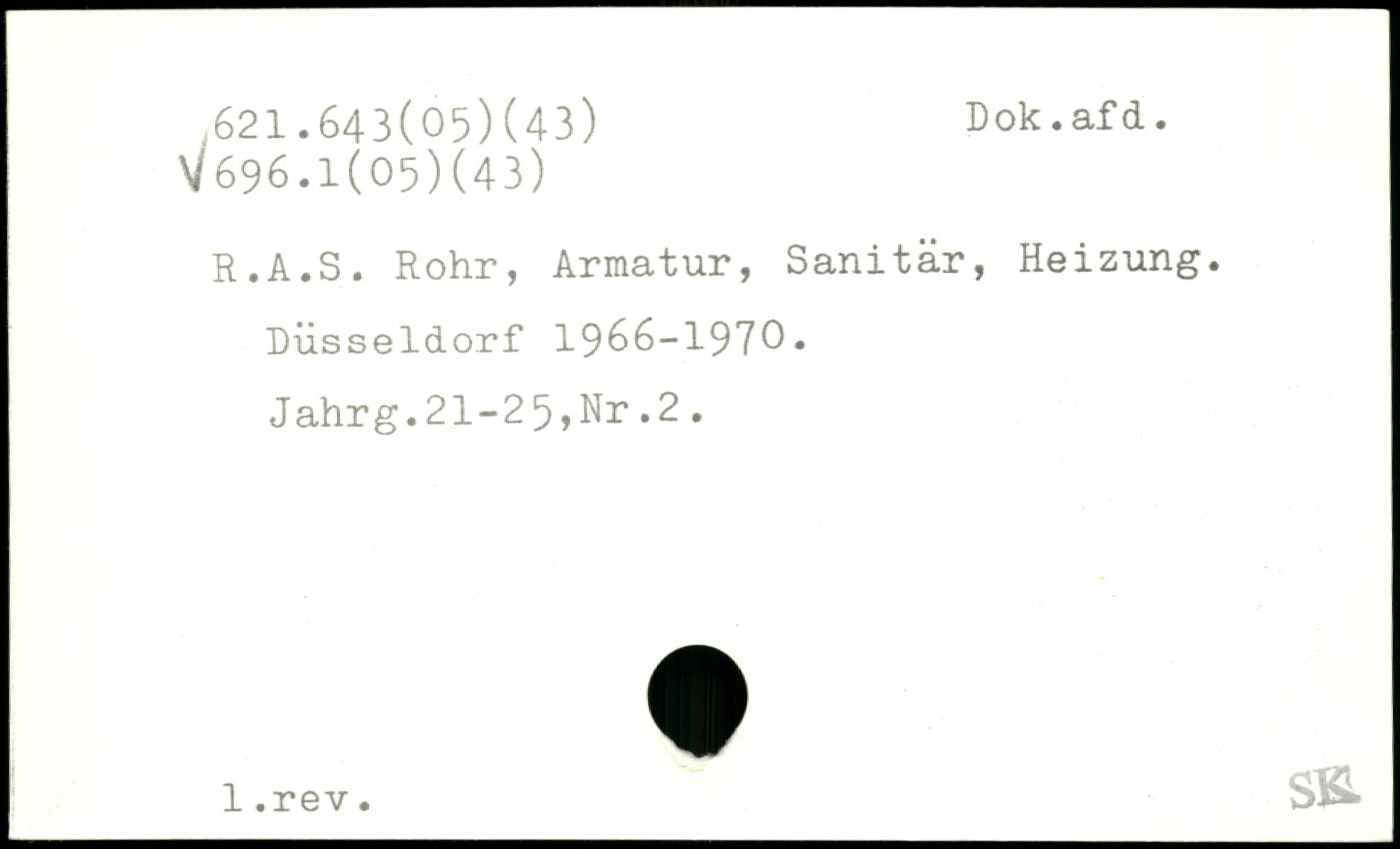 R.A.S. Rohr, Armatur, Sanitär, Heizung. Düsseldorf 1966-1970. Jahrg.21-25,Nr.2. !