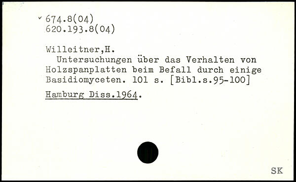 Untersuchungen über das Verhalten von Holzspanplatten beim Befall durch einige Basidiomyceten.