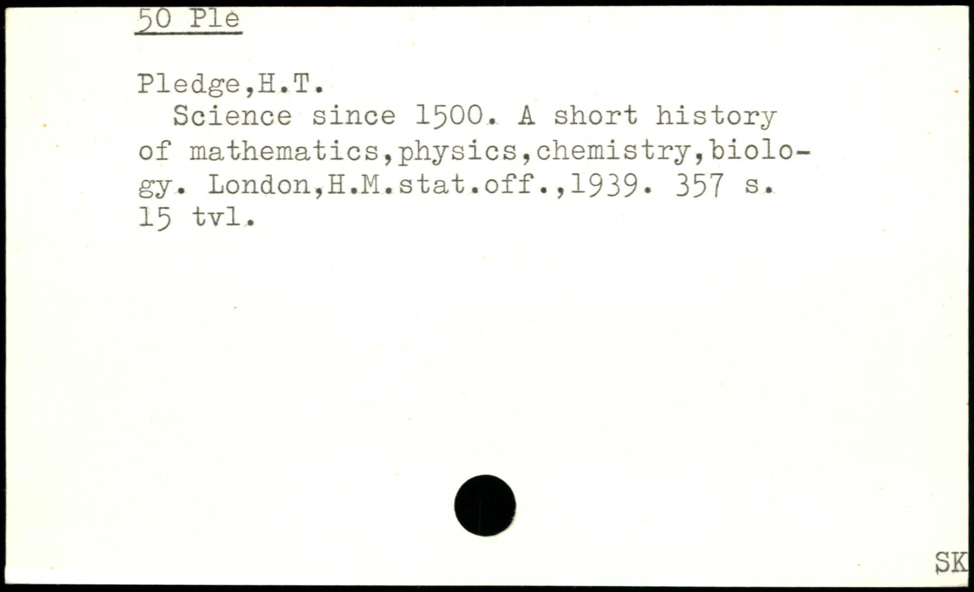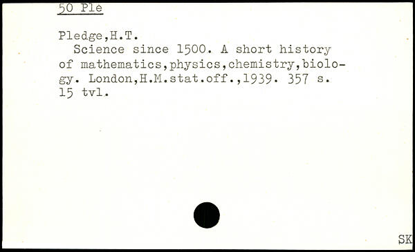 Science since 1500. A short history of mathematics,physics,chemistry,biology. London,H.M.stat.off.,1939.
