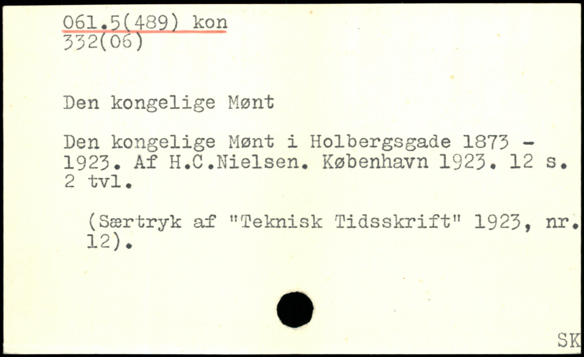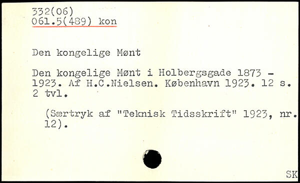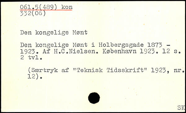 Den kongelige Mønt i Holbergsgade 1873 -1923. Af H.C.Nielsen.