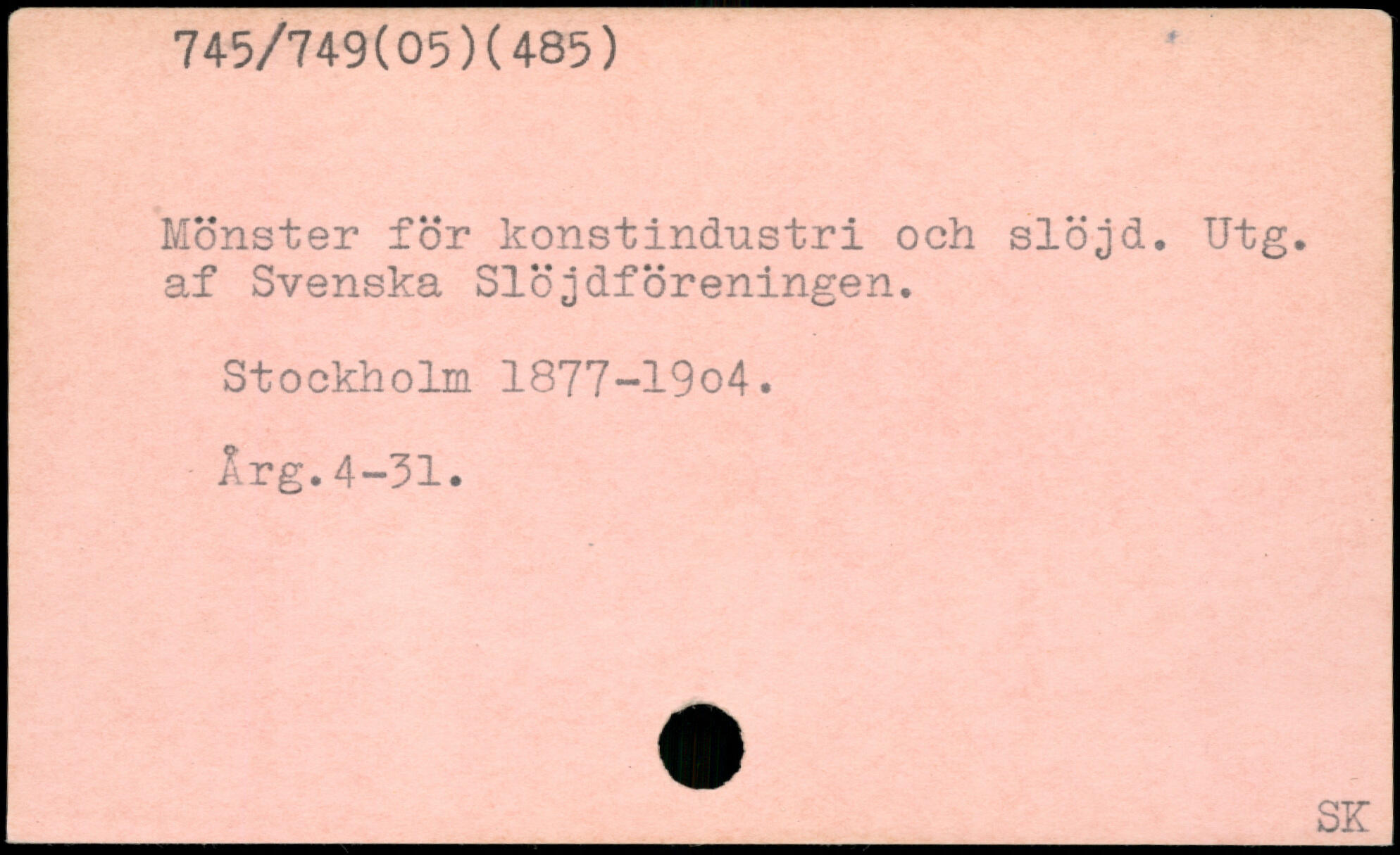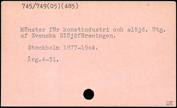 Mönster för konstindustri och slöjd. Utg. af Svenska Slöjdföreningen.