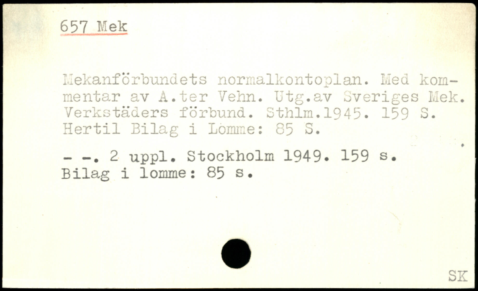 LIekanförbundets normalkontoplan. Med kommentar av A.ter Vehn. Ltg.av Sveriges Ivlek. Verkstäders förbund. Sthlm.1945.