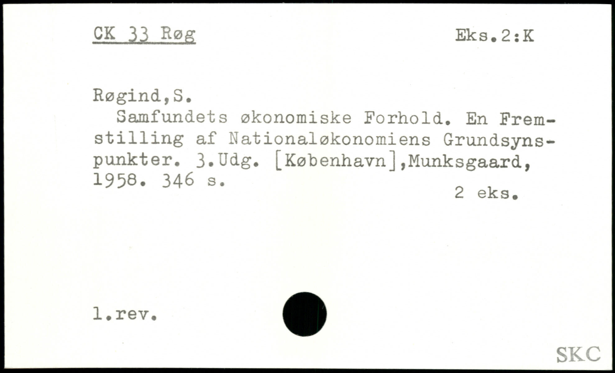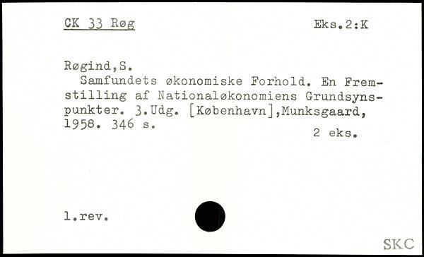 Samfundets økonomiske Forhold. En Fremst1111ng af Nationaløkonomiens Grundsynspunkter. 3.Udg. [København],Munksgaard, 1958-