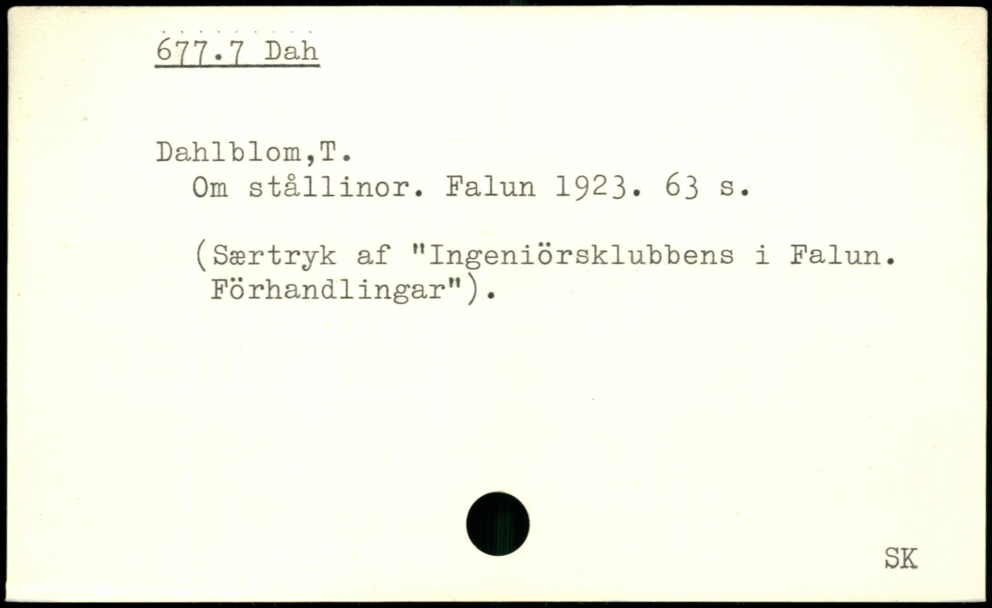 Om stållinor. Falun 1923.