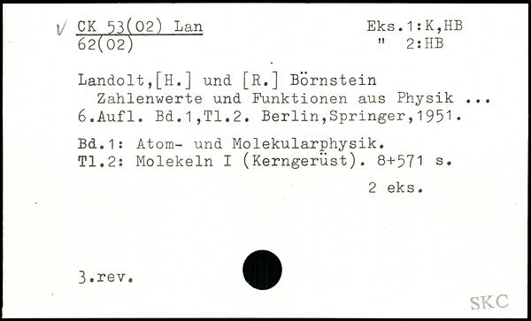 Landolt,[H.J und [R.] Börnstein Zahlenwerte und Funktionen aus Physik ...