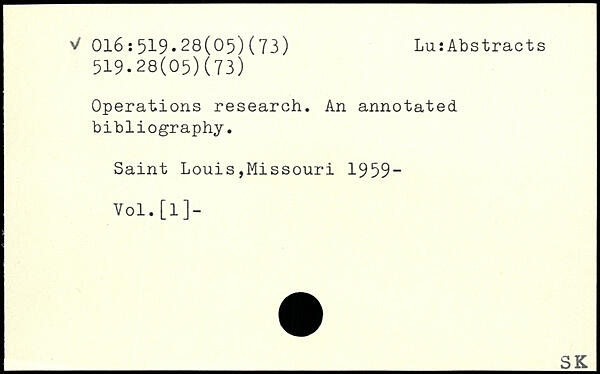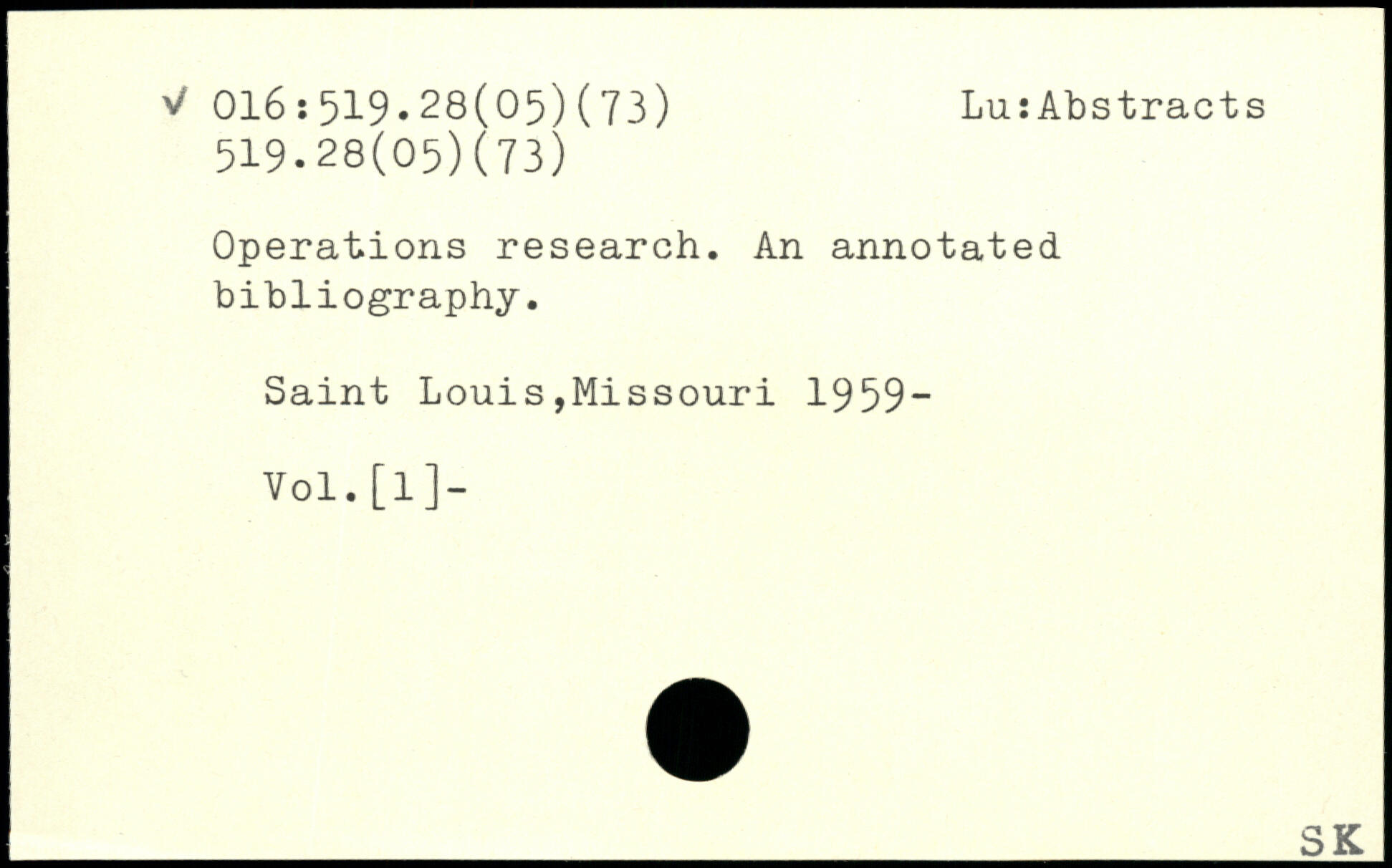 Operations research. An annotated bibliography. Saint Louis,Missouri 1959” Vol.[l]-