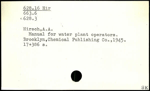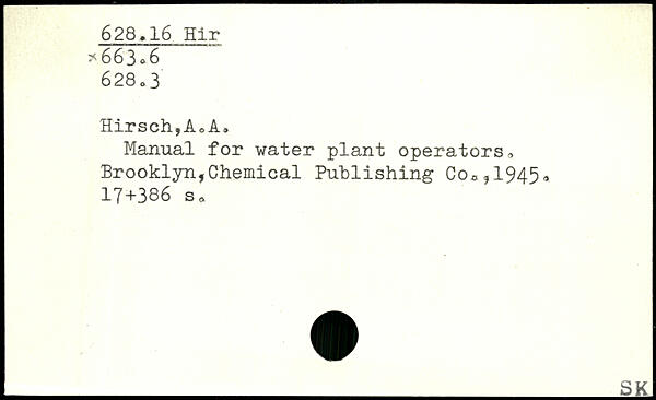 Manual for water plant operators. Brooklyn,Chemical Publishing Co,,1945