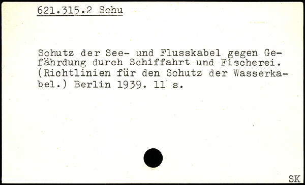Schutz der See- und Flusskabel gegen Gefährdung durch Schiffahrt und Fischerei. (Richtlinien für den Schutz der Wasserkabel.)