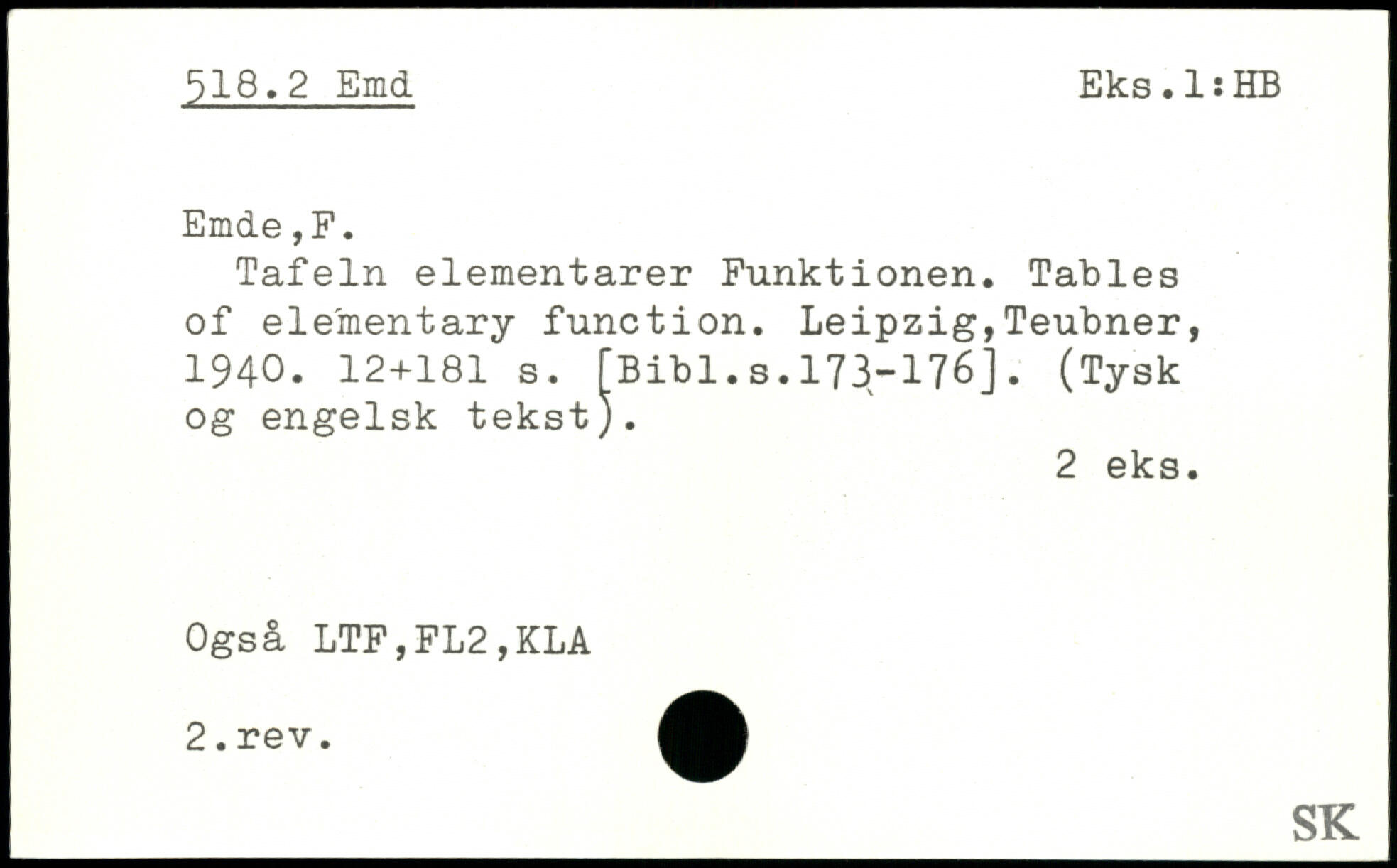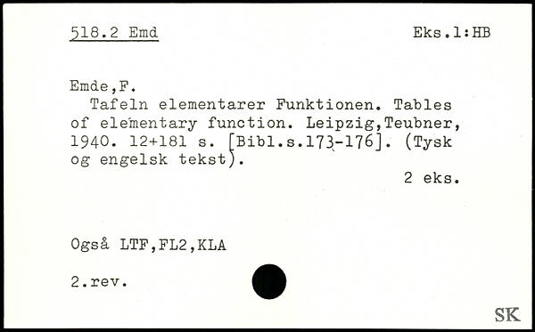 Tafeln elementarer Funktionen. Tables of elementary function.