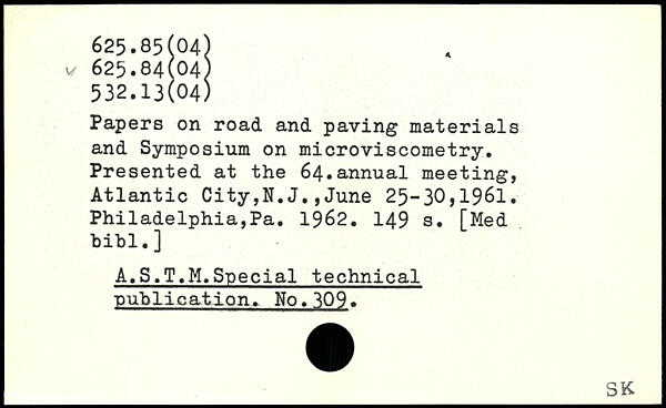 Papers on road and paving materials and Symposium on microviscometry. Presented at the 64.annual meeting, Atlantic City,N.J.,June 25-30,1981. Philadelphia,Pa. 1962.