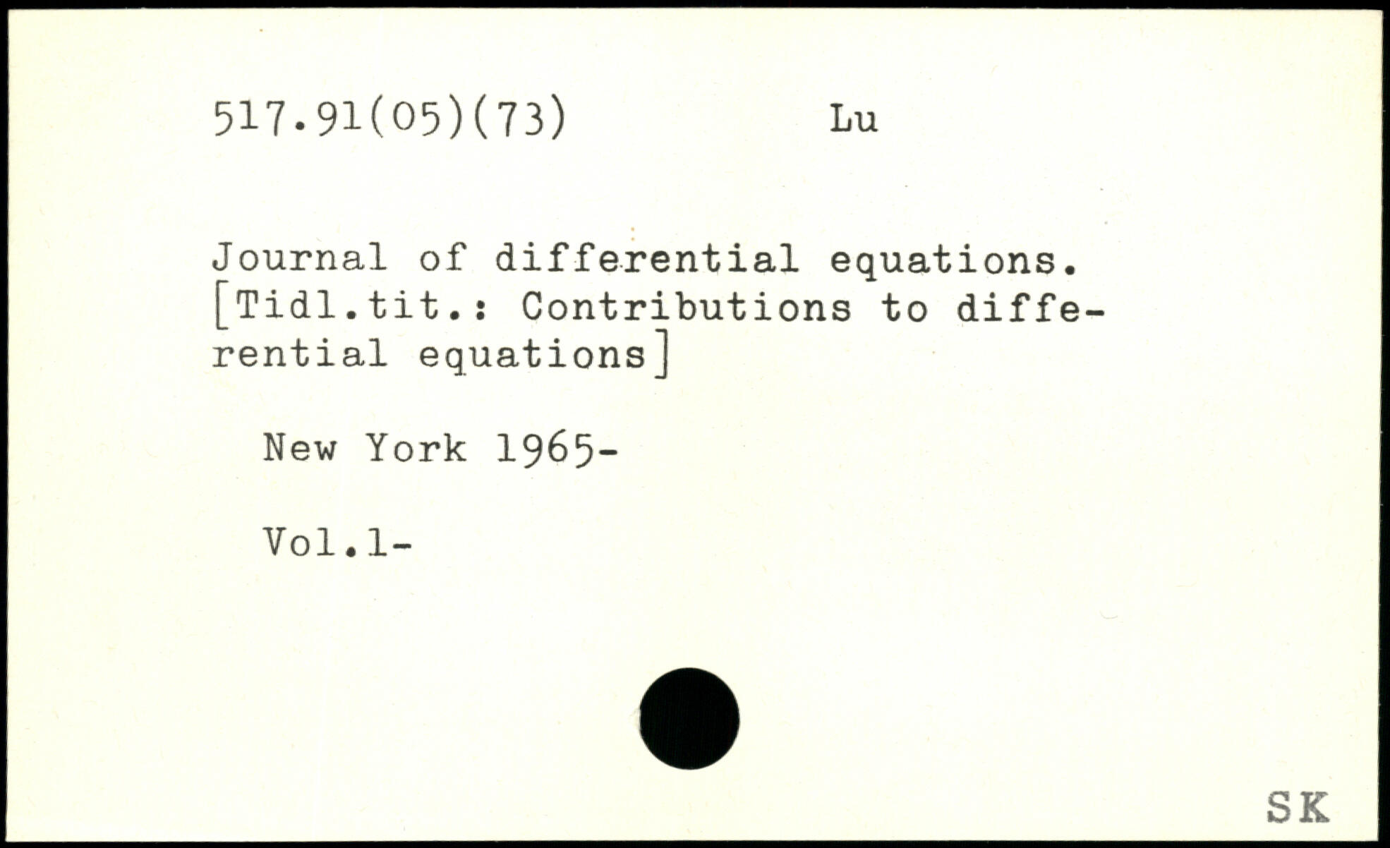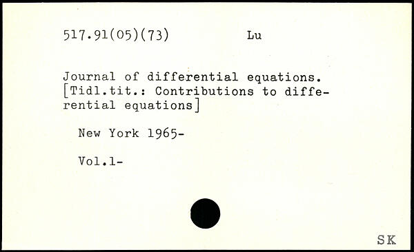Journal of differential equations. [Tidl.tit.: Contributions to differential equations]