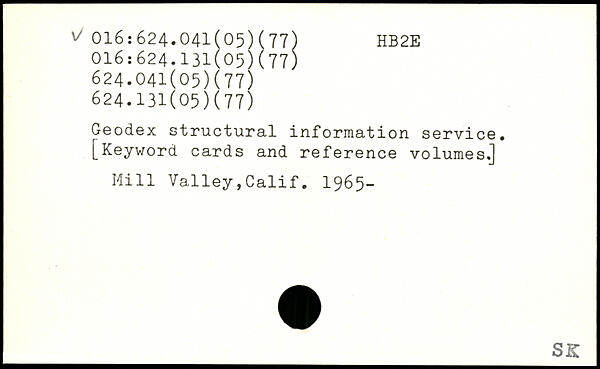 Geodex structural information service. [Keyword cards and reference volumes.] Mill Valley,Calif. 1965—