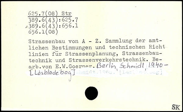 Strassenbau von A - Z. Sammlung der amtlichen Bestimmungen und technischen Rieht linien für Strassenplanung, Strassenbau-technik und Strassenverkehrstechnik. Be-arb.von E.W.Goernpr. ßetrl,'n /^Vo- ’t lö iblad&boojj ; j 0