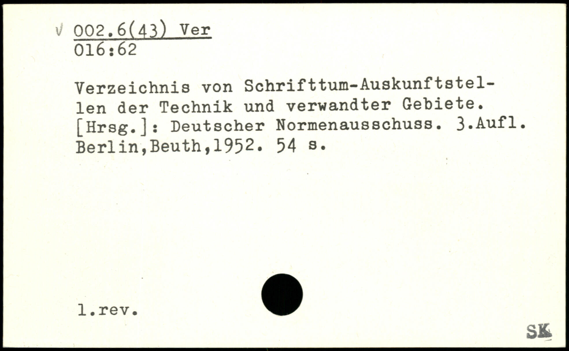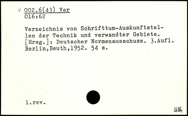 Verzeichnis von Schrifttum-Auskunf tat eilen der Technik und verwandter Gebiete. [Hrsg.]: Deutscher Normenausschuss.