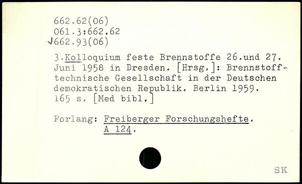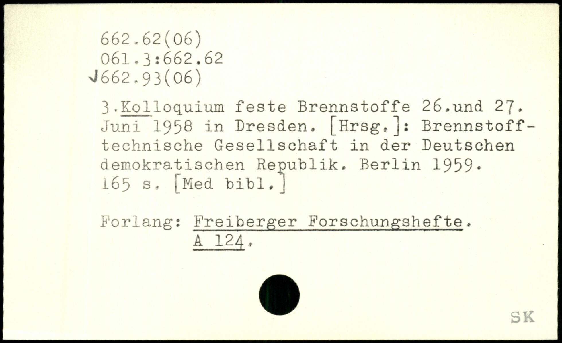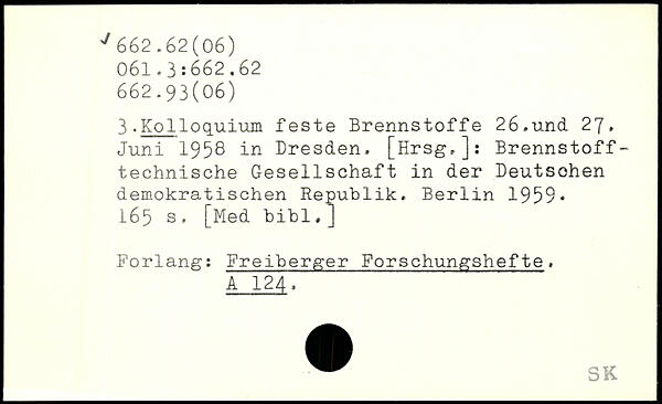 3.Kolloquium feste Brennstoffe 26.und 27. Juni 1958 in Dresden. [Hrsg.]: Brennstofftechnische Gesellschaft in der Deutschen demokratischen Republik.