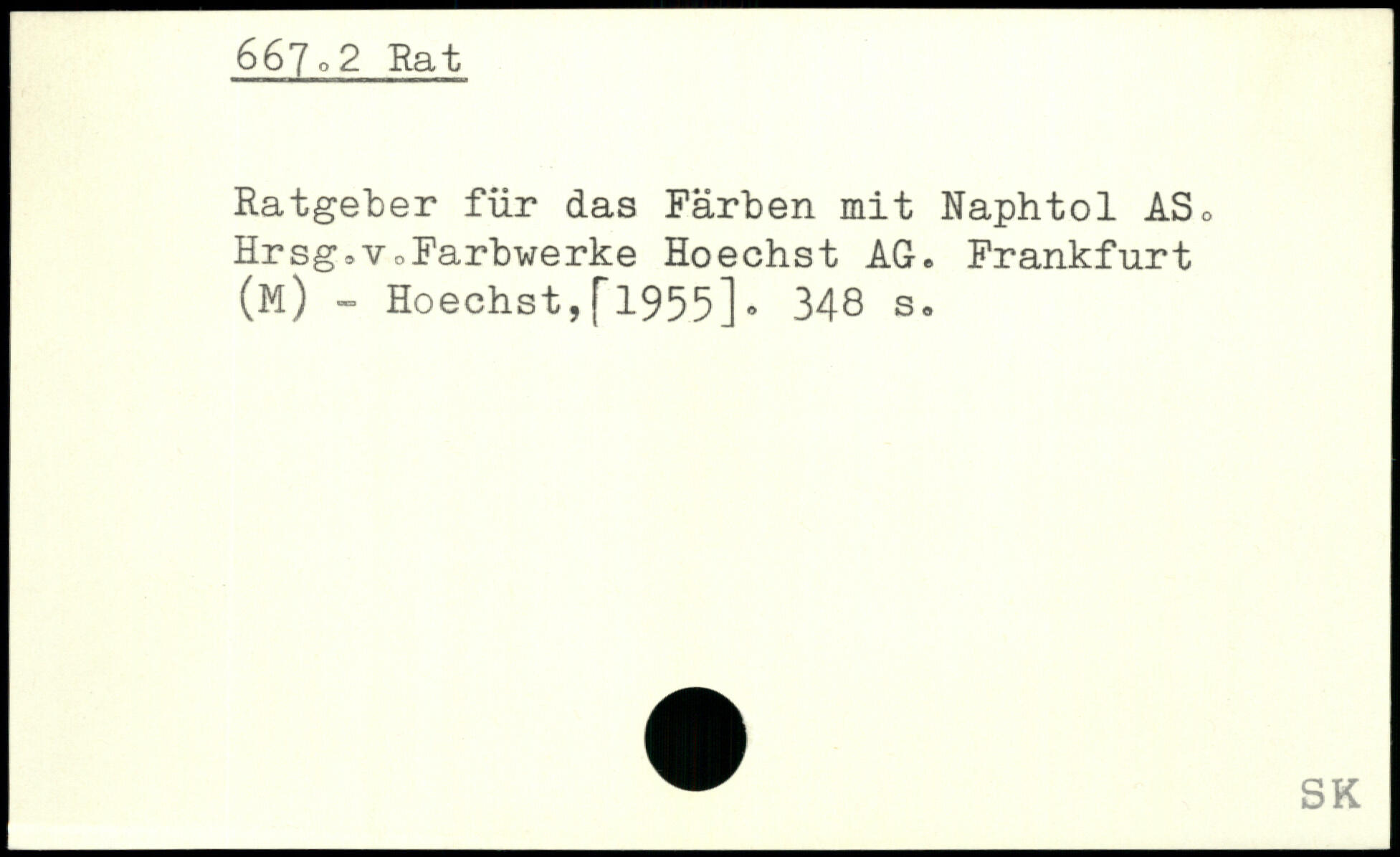 Ratgeber für das Färben mit Naphtol AS0 Hrsg.v,Farbwerke Hoechst AG. Frankfurt (M) - Hoechst,[1955]