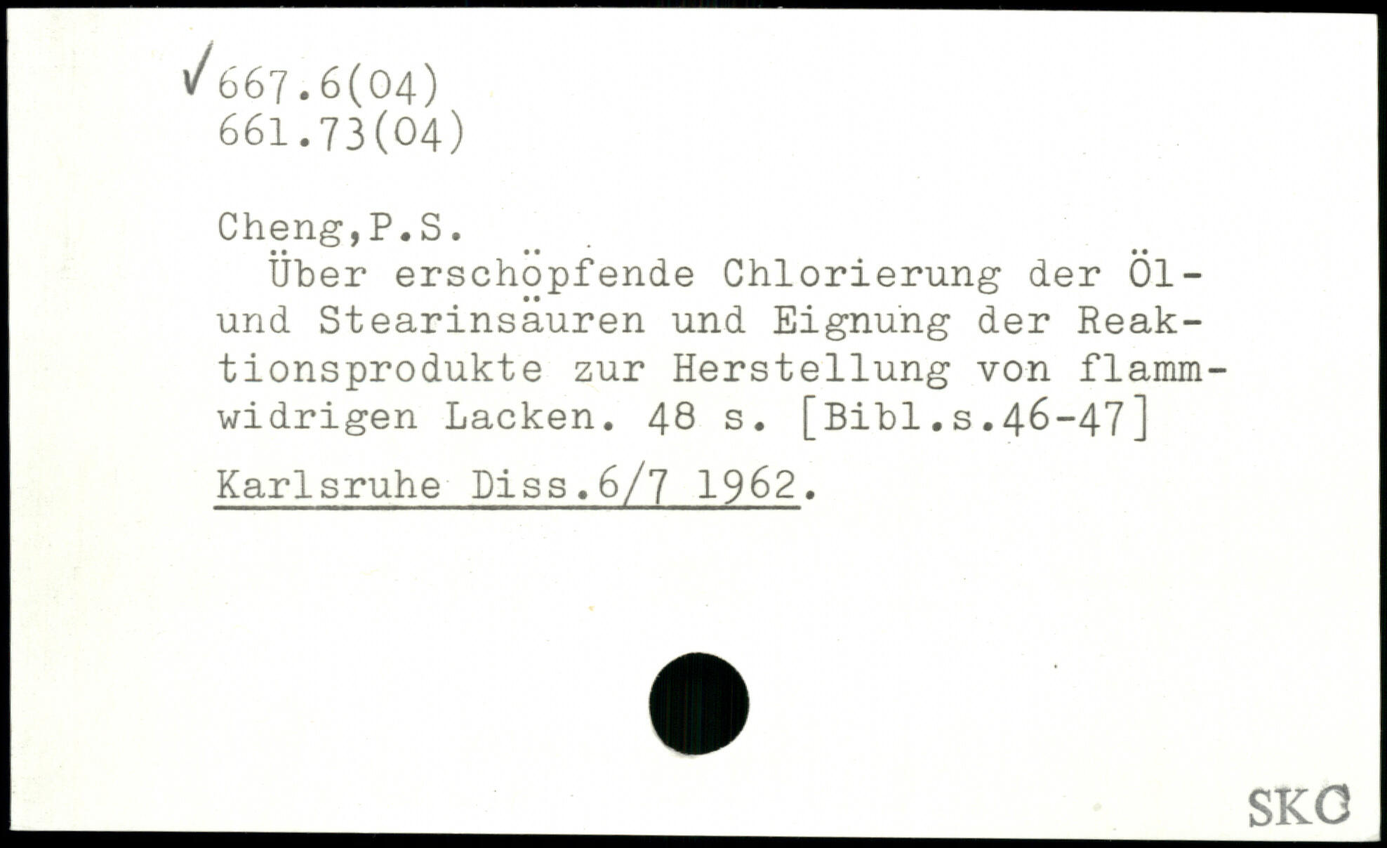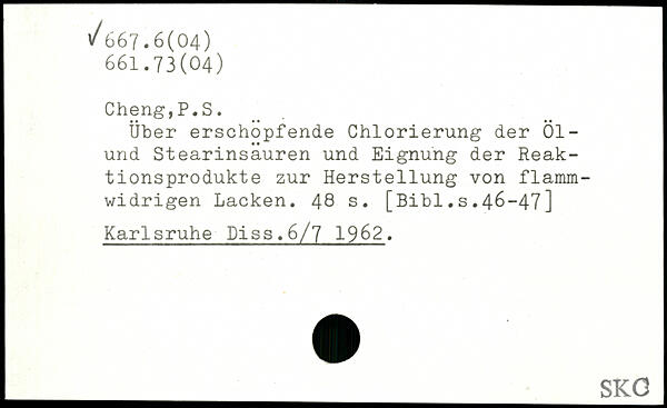 Über erschöpfende Chlorierung der Öl-und Stearinsauren und Eignung der Reaktionsprodukte zur Herstellung von flammwidrigen Lacken.