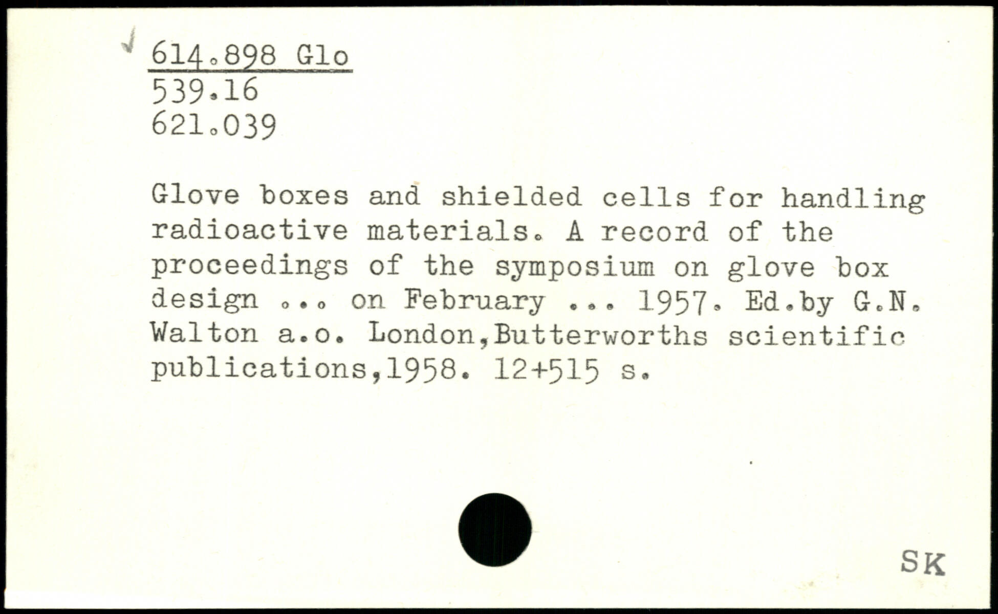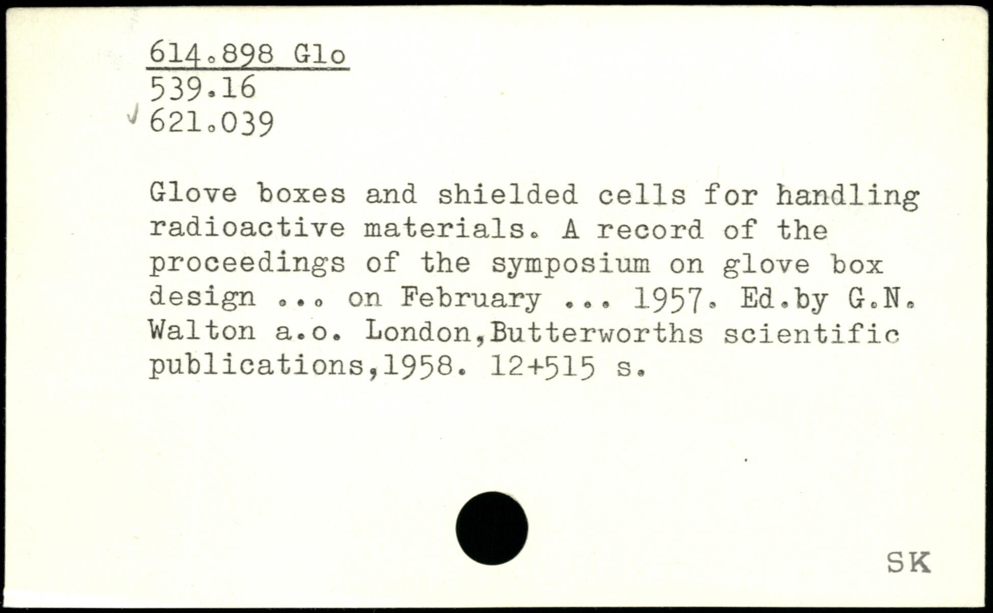Glove boxes and shielded cells for handling radioactive materials, A record of the proceedings of the symposium on glove box design ,.<> on February ... 1957. Ed,by G.N. Walton a.o.