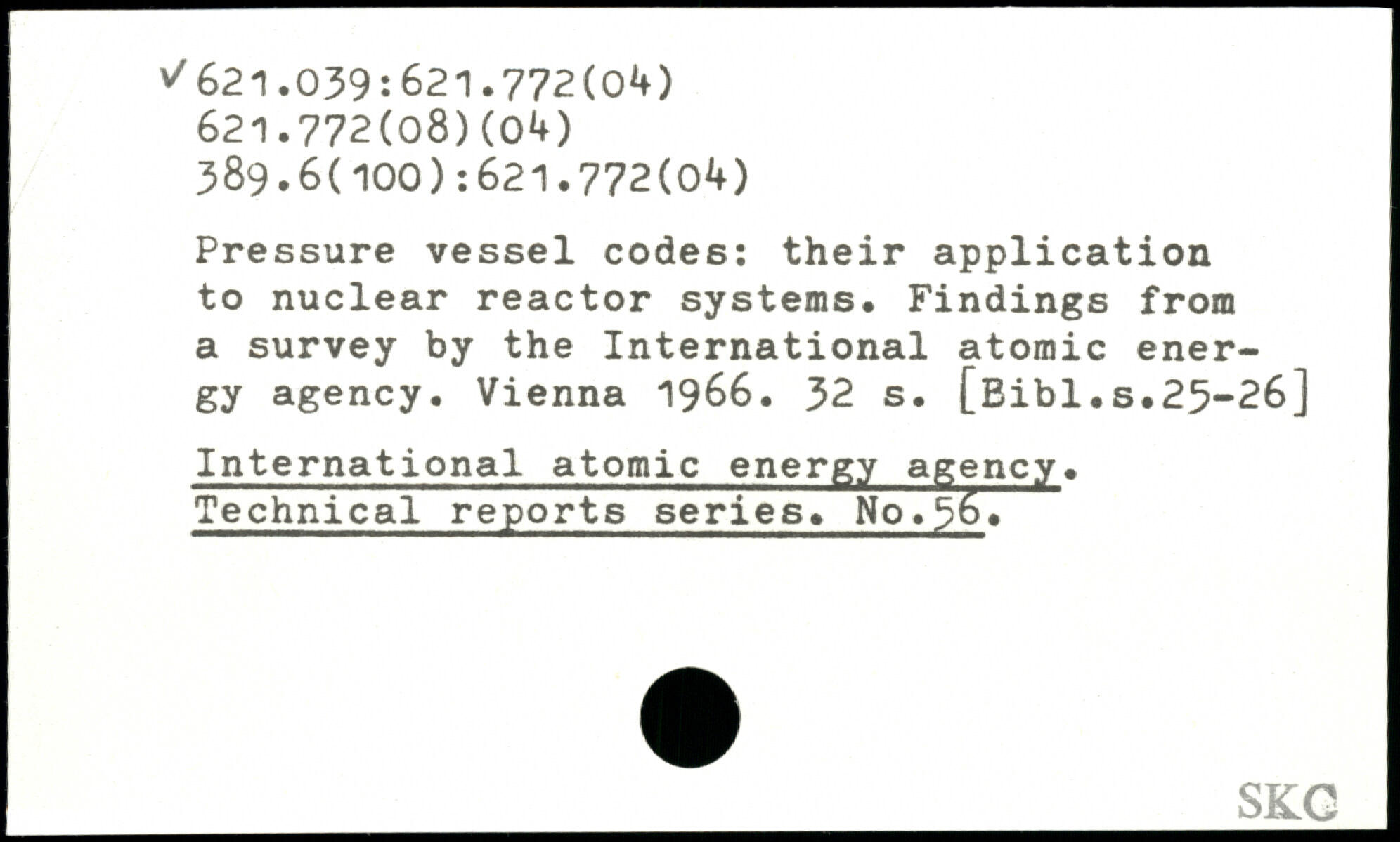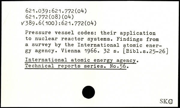 Pressure vessel codes: their application to nuclear reactor systems. Findings from a survey by the International atomic energy agency. Vienna 1966.