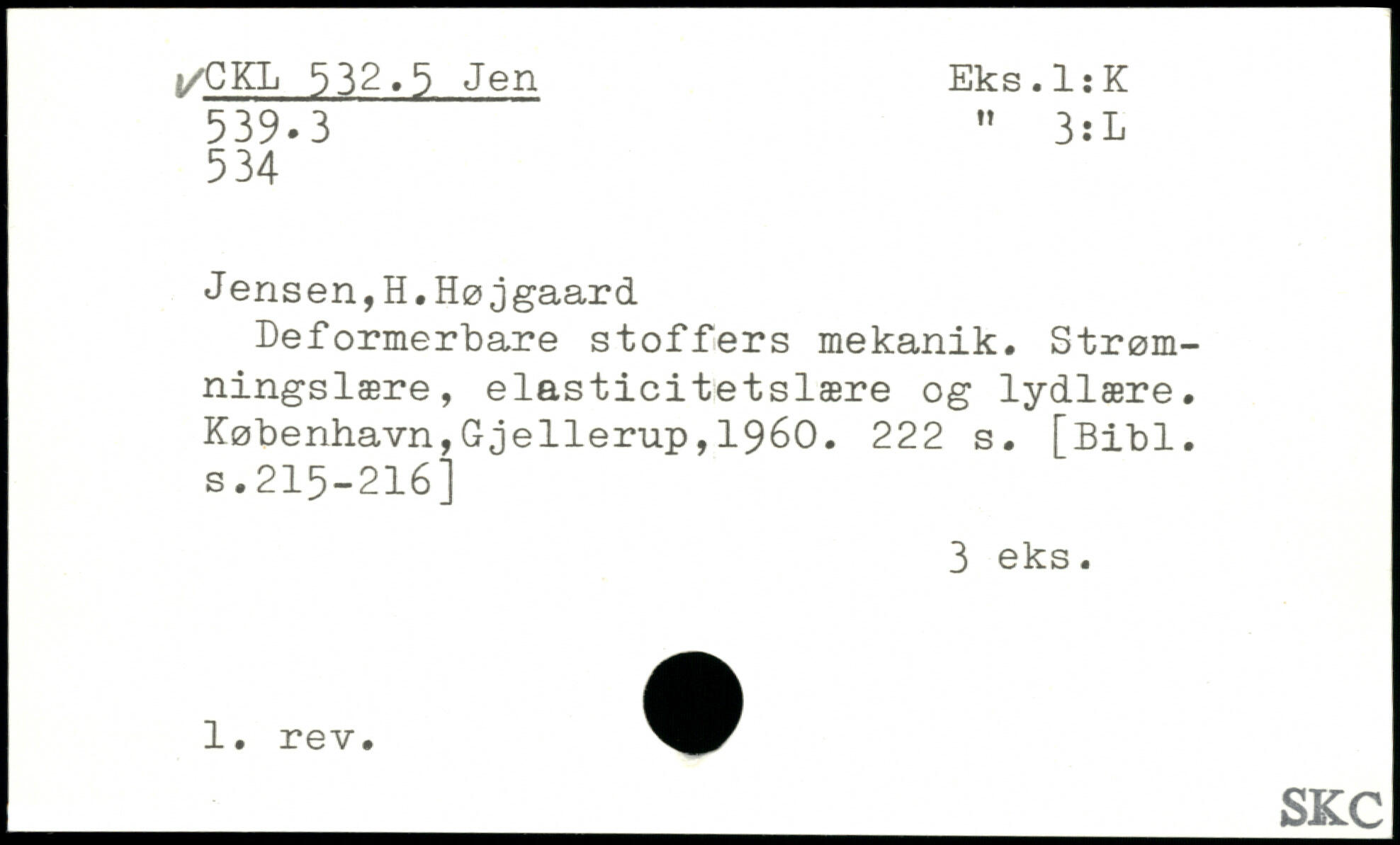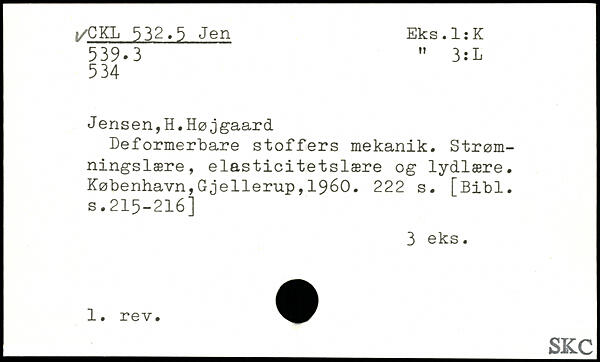 Jensen,H.Hø j gaard Deformerbare stoffers mekanik. Strømningslære, elasticitetslære og lydlære.