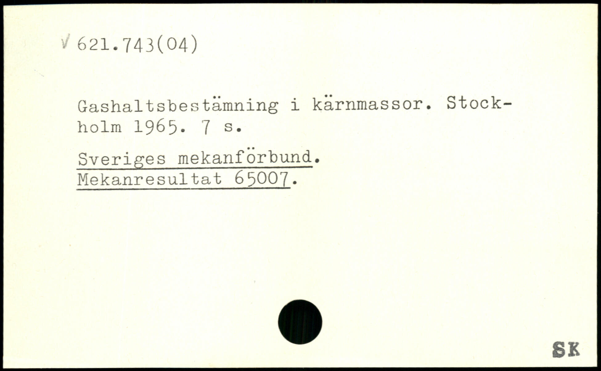 Gashaltsbestämning i kärnmassor. Stock-holm 1965.