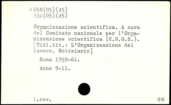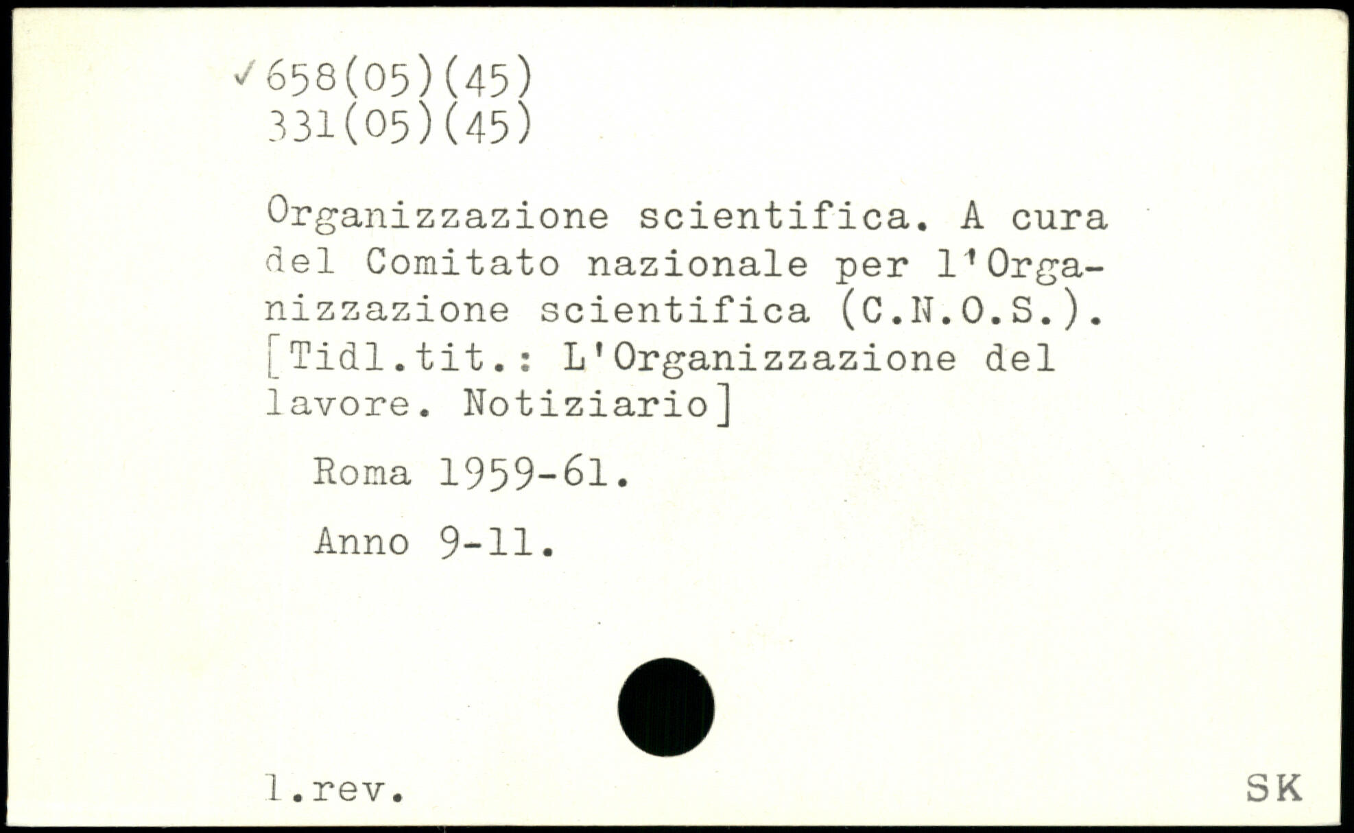 Organizzazione scientifica. A cura del Comitato nazionale per 11Organizzazione scientifica (C.N.O.S.). [Tidl.tit.: L'Organizzazione del lavore. Notiziario]