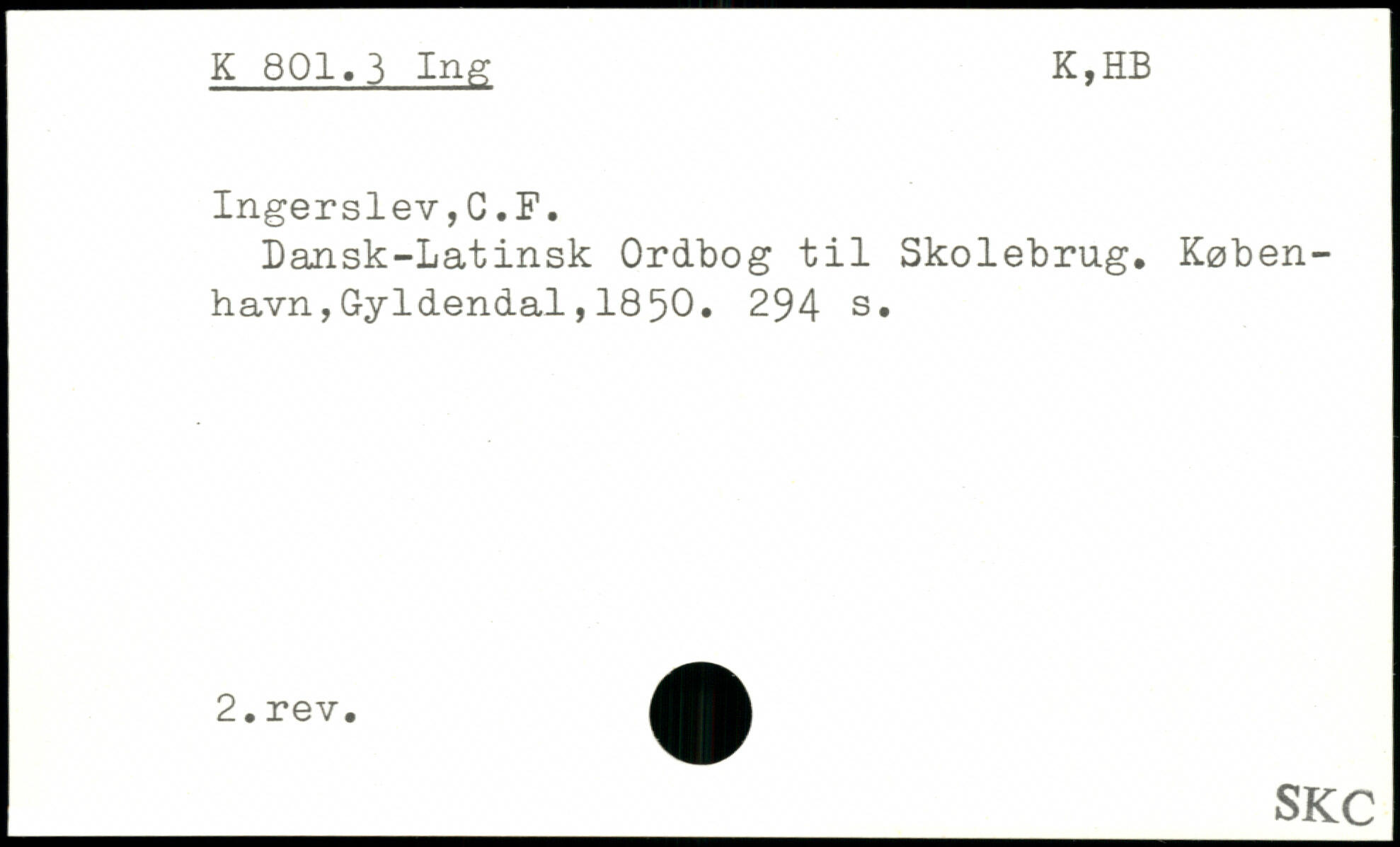 Dansk-Latinsk Ordbog til Skolebrug. København, Gyldendal, 18 50.