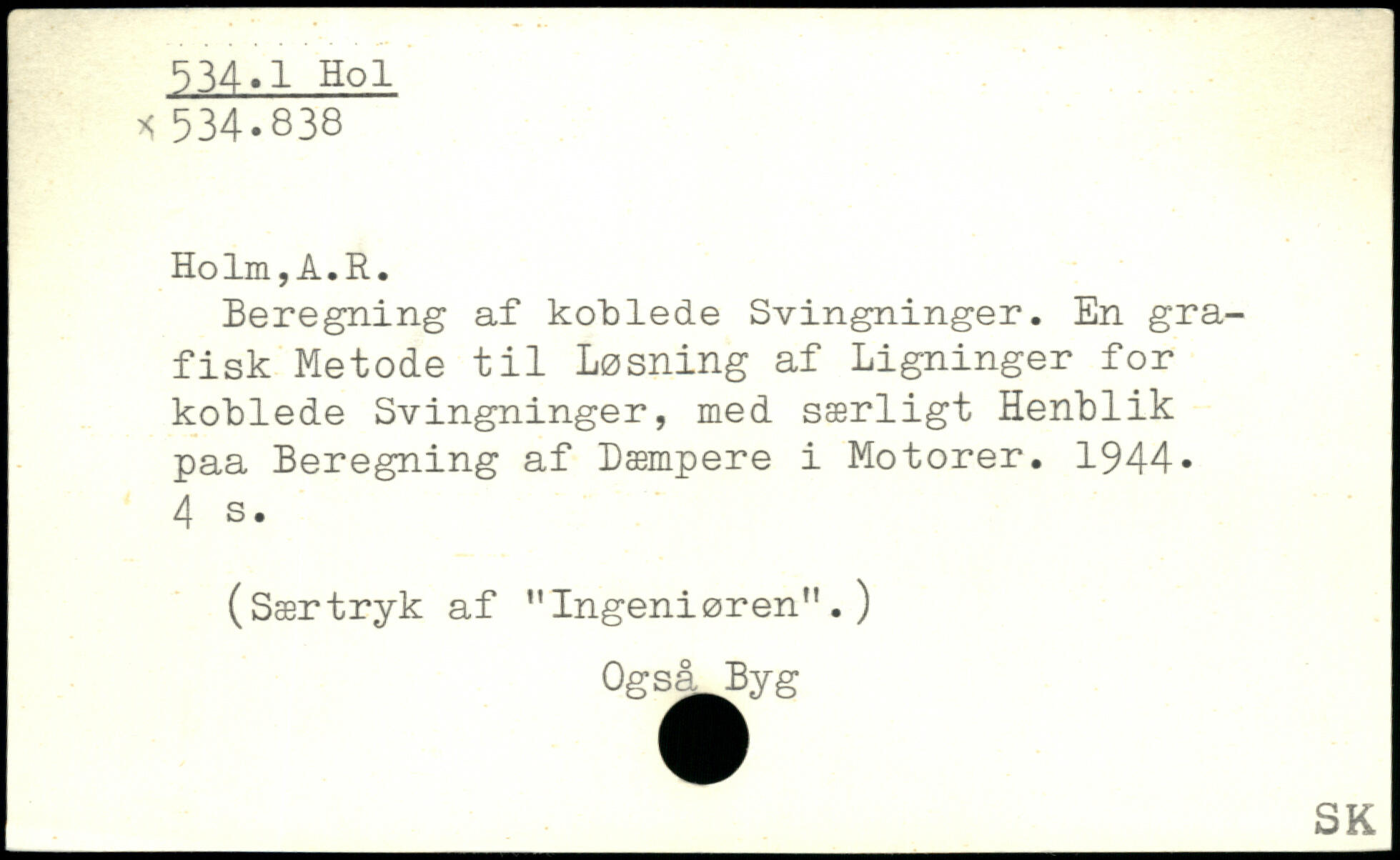 Beregning af koblede Svingninger. En grafisk Metode til Løsning af Ligninger for koblede Svingninger, med særligt Henblik paa Beregning af Dæmpere i Motorer. 1944