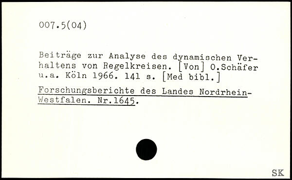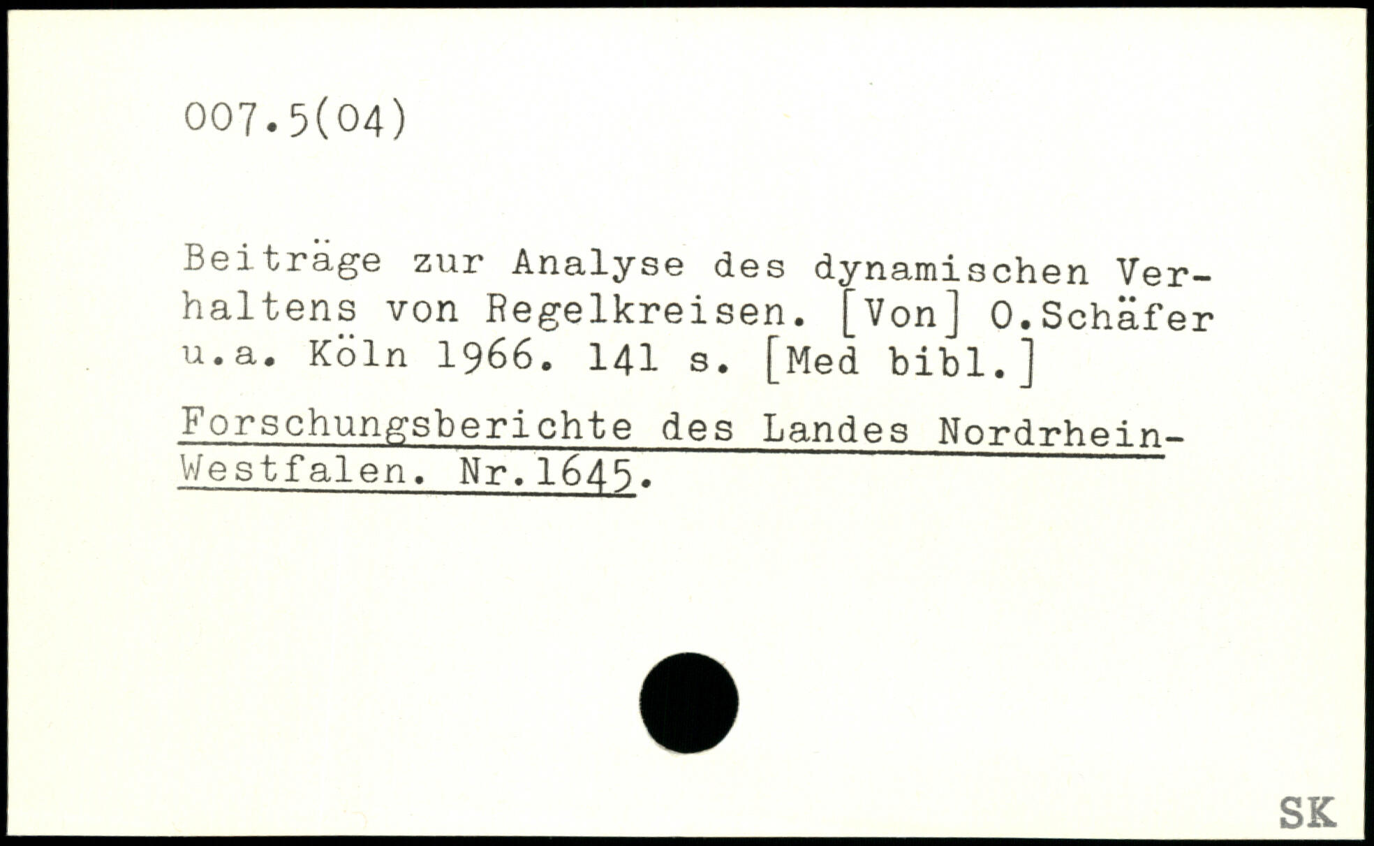 ;3ei trage zur Analyse des dynamischen Verhaltens von Regelkreisen. [Von] 0.Schäfer u.a.