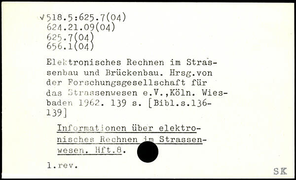Elektronisches Rechnen im Stras-senbau und Brückenbau. Hrsg.von der Forschungsgesellschaft für das Strassenwesen e.V.,Köln. Wiesbaden 1962.