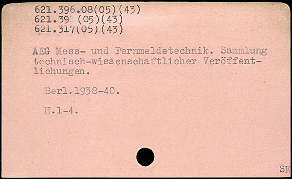 AEG Mess- und Fernmeldetechnik. Sammlung techniseh-wiss enschaftlicher Veröffentlichungen. Berl.1938-40. II. 1-4.