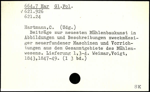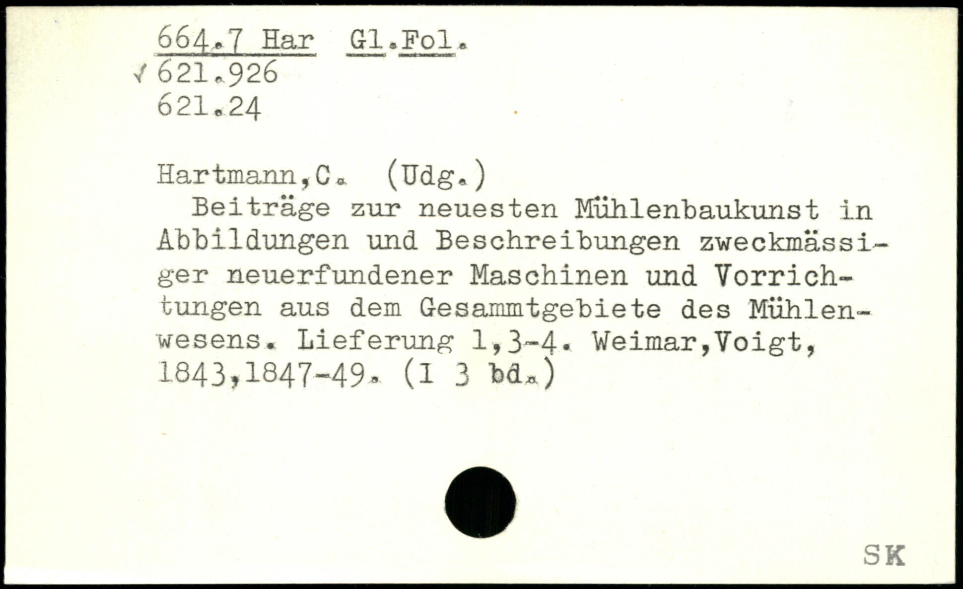 Hartmann,C,. (üdg.) Beiträge zur neuesten Muhlenbaukunst in Abbildungen und Beschreibungen zweckmässiger neuerfundener Maschinen und Vorrichtungen aus dem Gesammtgebiete des Mühlenwesens. Lieferung 1,3-4.