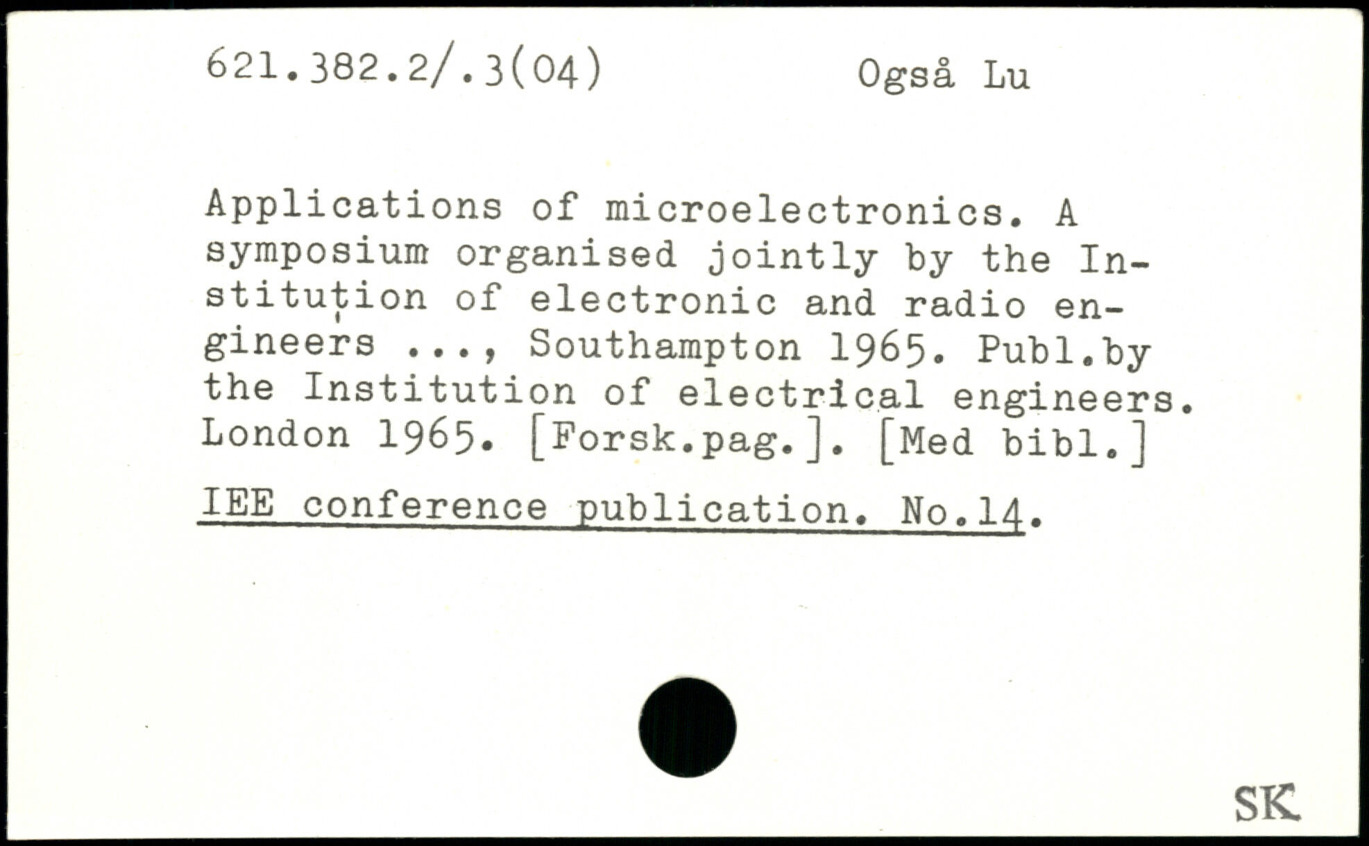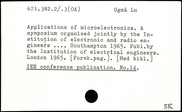 Applications of microelectronics. A symposium organised jointly by the Institution of electronic and radio engineers Southampton 1965.