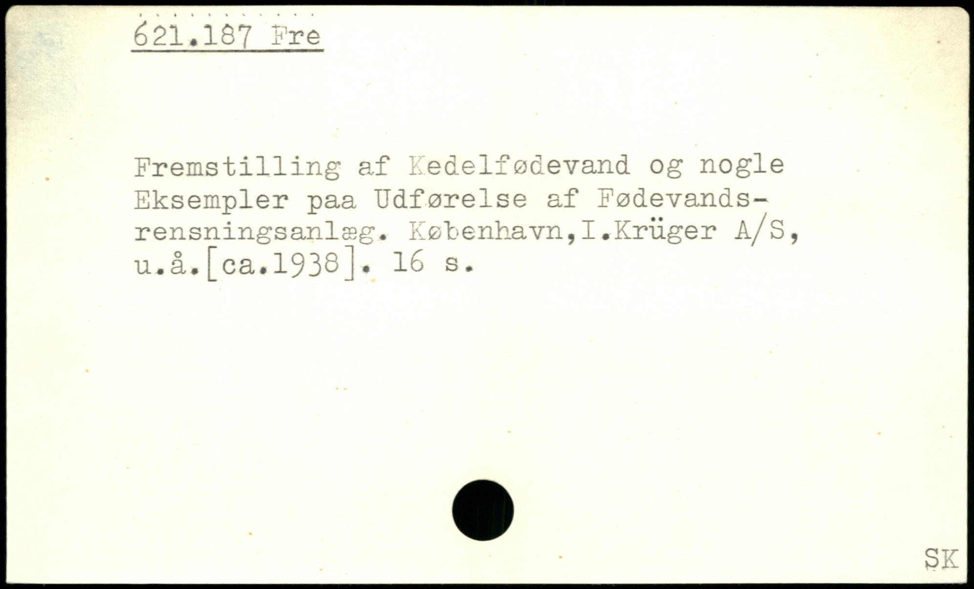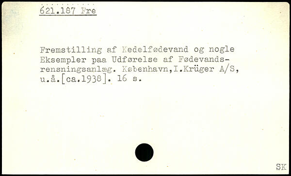 Fremst1111ng af Kedelfødevand og nogle Eksempler paa Udførelse af Fødevands-rensningsanlæg. København, I.Kriiger å/s, u.å.[ca.1938].