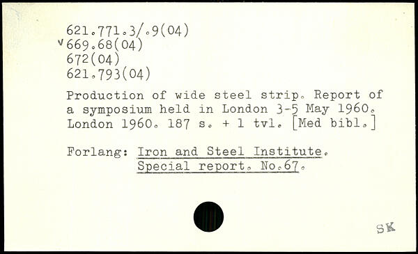 Production of wide steel strip, Report of a symposium held in London 3~5 Maj 1960