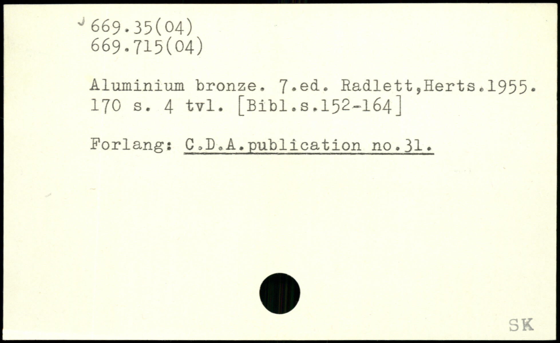 Aluminium bronze. 7,e(i. Radle tt, Herts. 1955. I